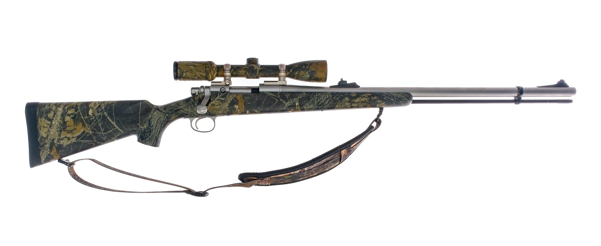 Description Remington Model 700 ML in .50 caliber with a single round capacity and a 25″ barrel. Rubber butt pad. Checkered camo motif composite stock and front forend. Matte silver finished trigger guard, bolt, receiver and barrel. Serrated stainless steel trigger. Rear right side of receiver safety switch. Under barrel removable ramrod. Rear adjustable and front fixed blade sight. Mounted with a Pentax Whitetails Unlimited scope with clear glass and a duplex reticle. Comes with a nylon camo shoulder sling. Black Powder percussion cap muzzle loader, No FFL required and ships to MOST buyers homes. Condition: Very Good with light scuffs and handling wear. The rifled bore has light rust with strong visible rifling. Barrel Length: 25″ Serial: ML245164 Manufacturer: Remington Caliber: .50 Model: 700 ML