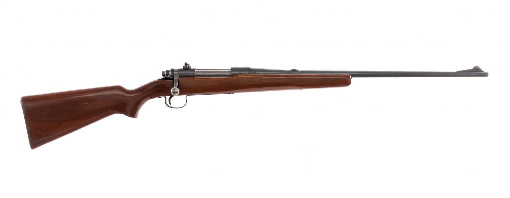 Description Remington Model 721 chambered in .30-06 Springfield with a four round integral magazine capacity and a 24″ barrel. Blued barrel, receiver, serrated trigger, trigger guard, and floorplate. Push to fire safety selector. The receiver is drilled and tapped and the rear is mounted with a Lyman peep sight. Fixed front blade sight. Smooth wood pistol grip stock with checkered Remington butt plate. Must ship to a FFL or C&R holder. Condition: Good/Very Good with varying scratches and finish wear from handling and operation. Varying spots of metal oxidation and finish patina on most metal parts. Varying scratches and dings in the stock. Bore has some light metal oxidation with strong visible rifling. Barrel Length: 24″ Serial: 243135 Manufacturer: REMINGTON ARMS COMPANY Caliber: .30-06 Springfield Model: 721 Book# 02310