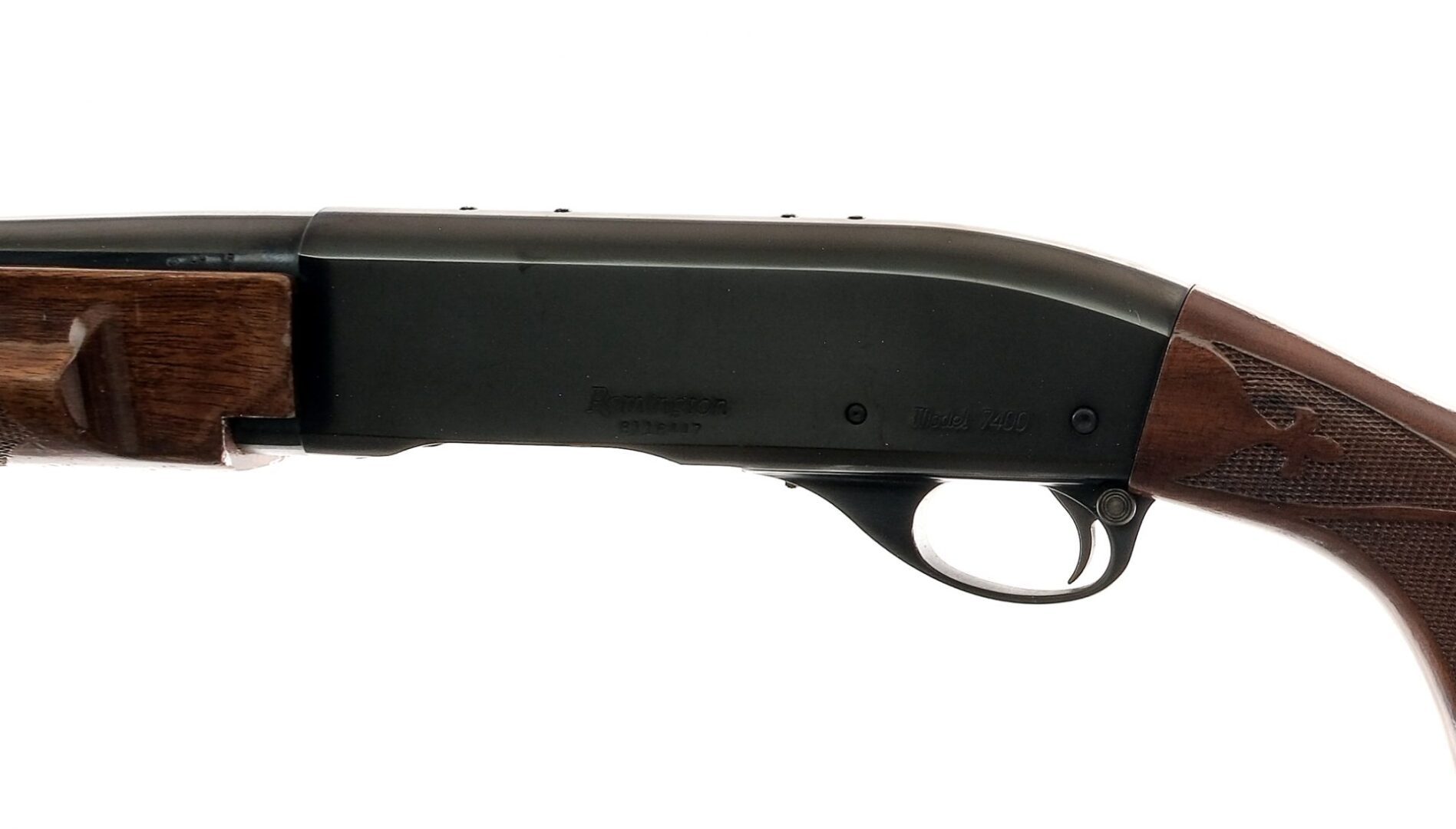 Description Remington 7400 chambered in .30-06 with a 22″ barrel. Magazine fed but does not include its removable magazine. Blued barrel, frame, and trigger. Serrated charging handle, magazine release, and cross bolt safety. The top of the receiver is drilled and tapped for mounting optics. Checkered wood forend and pistol grip stock with checkered Remington butt plate. Adjustable rear sight and fixed beaded front blade. Must ship to a FFL holder. Condition: Very Good with scratches, scuffs and wear from normal handling and operation. Some dried oil/adhesive towards the front of the barrel. Scratches, scuffs, and dings on the wood. Clean bore with strong rifling. Barrel Length: 22″ Serial: 8116447 Manufacturer: REMINGTON ARMS COMPANY Caliber: .30-06 Springfield Model: 7400 Book# 02587