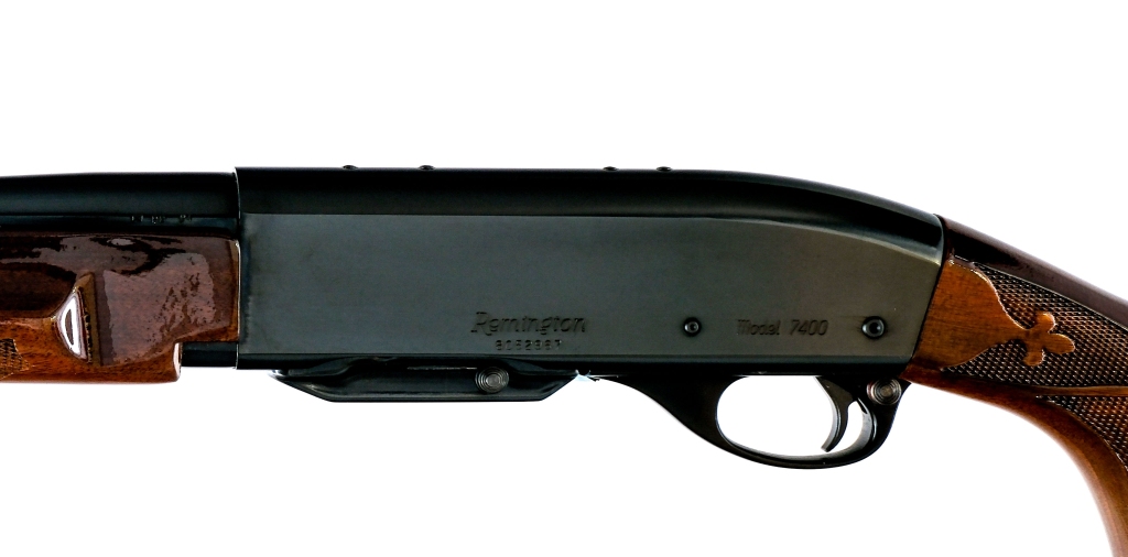 Description Remington 7400 chambered in .30-06 Springfield with one, four round removable magazine and a 23″ barrel. Manufactured in 1981 with PB date code. Blued barrel, receiver, charging handle, and controls. Cross bolt safety and serrated magazine release. Adjustable rear sight and fixed front blade. Checkered wood forend and pistol grip stock with serrated black butt plate. Must ship to a FFL holder. Condition: Very good with light scratches, sharp edge wear, and cosmetic handling wear. Light internal wear from operation. Light scratches on the wood. Bright and clean bore with strong rifling. Barrel Length: 23″ Serial: 8052967 Manufacturer: REMINGTON ARMS COMPANY Year: 1981 Caliber: .30-06 Springfield Model: 7400 Book# 08218
