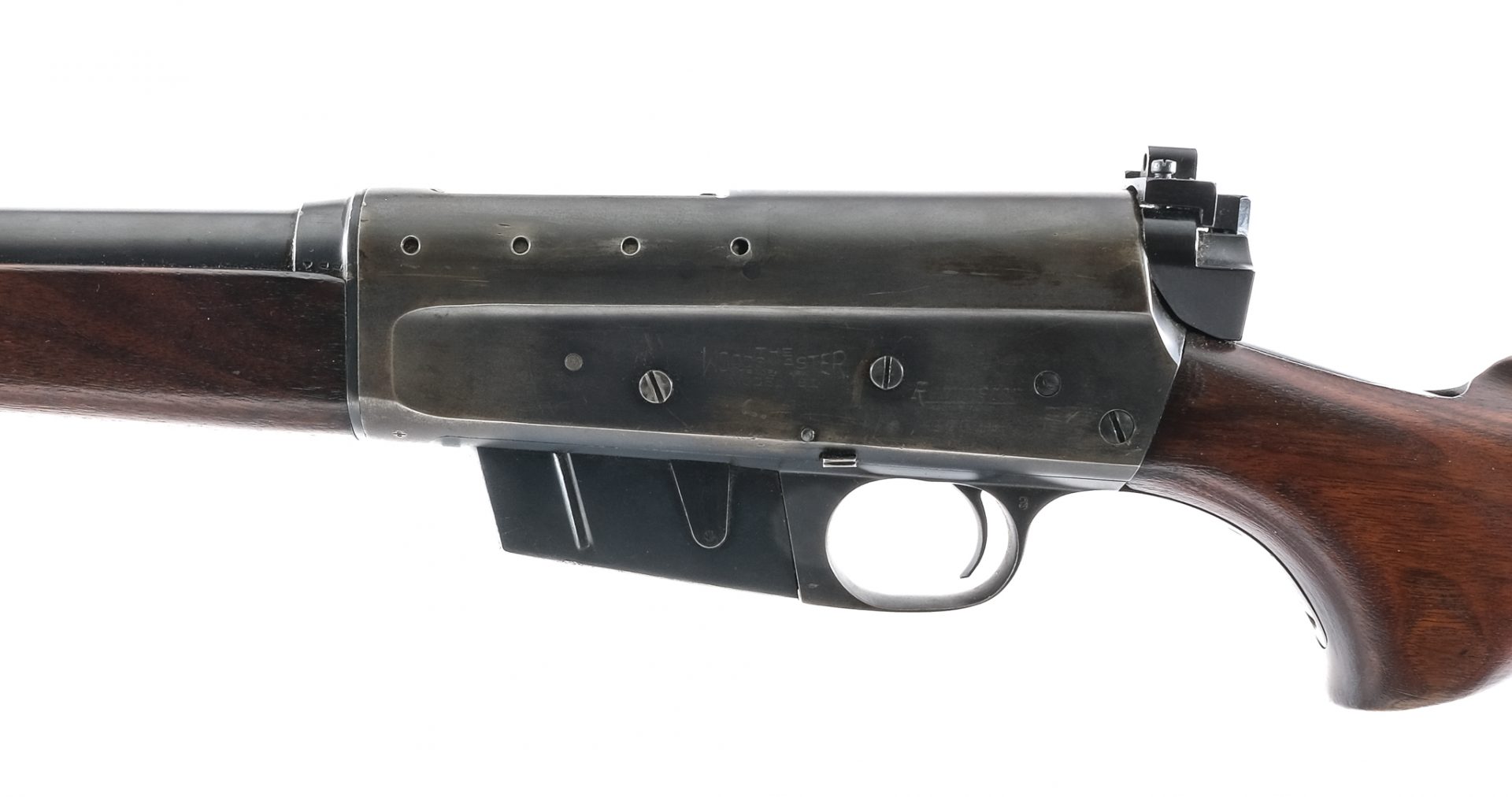 Description Remington 81 Woodsmaster chambered in .300 Savage with a five round integral magazine and a 22″ barrel. Blued barrel, receiver, magazine, charging handle. trigger guard, and solid trigger. Stainless bolt. Smooth wood forend and butt stock with metal butt plate. Left side of the receiver serrated bolt release and right side of the receiver safety lever. Rear aftermarket frame mounted peephole sight and front blade. The barrel is drilled and tapped and missing the rear sight. Compass mounted in the rear of the stock. Must ship to FFL or C&R holder. Condition: Good with scratches, nicks, and marks on the finish and wood. Finish loss and patina on the receiver. Receiver has had four holes drilled into the side to mount an optic. Small dent in the left side of the barrel. Speckling of metal oxidation on the barrel and receiver. Finish loss on the butt plate. Very clean bore with strong rifling. Barrel Length: 22″ Serial: 36536 Manufacturer: REMINGTON ARMS COMPANY Year: 1949 Caliber: .300 Savage Model: 81 Woodsmaster Book# 10-269