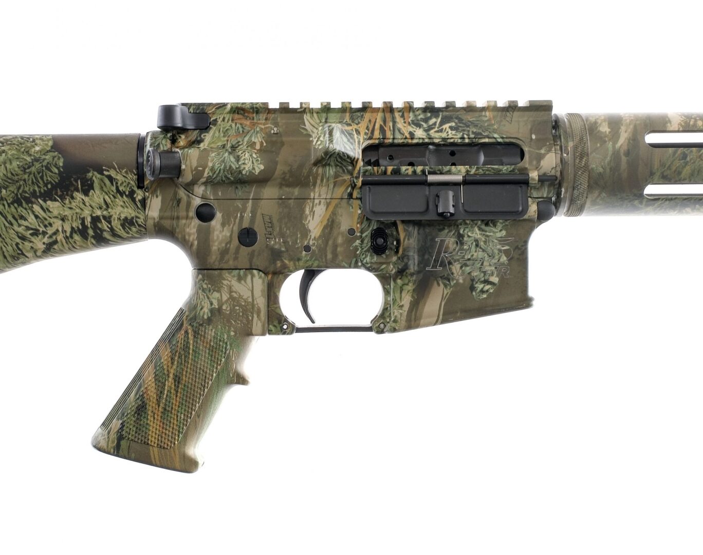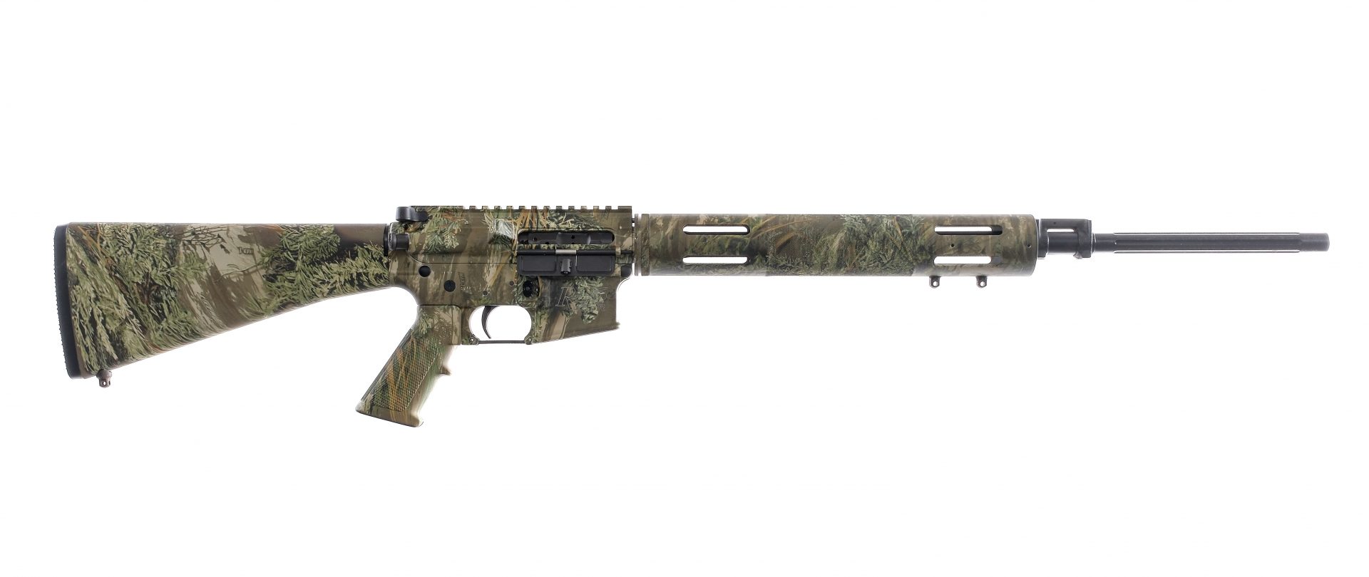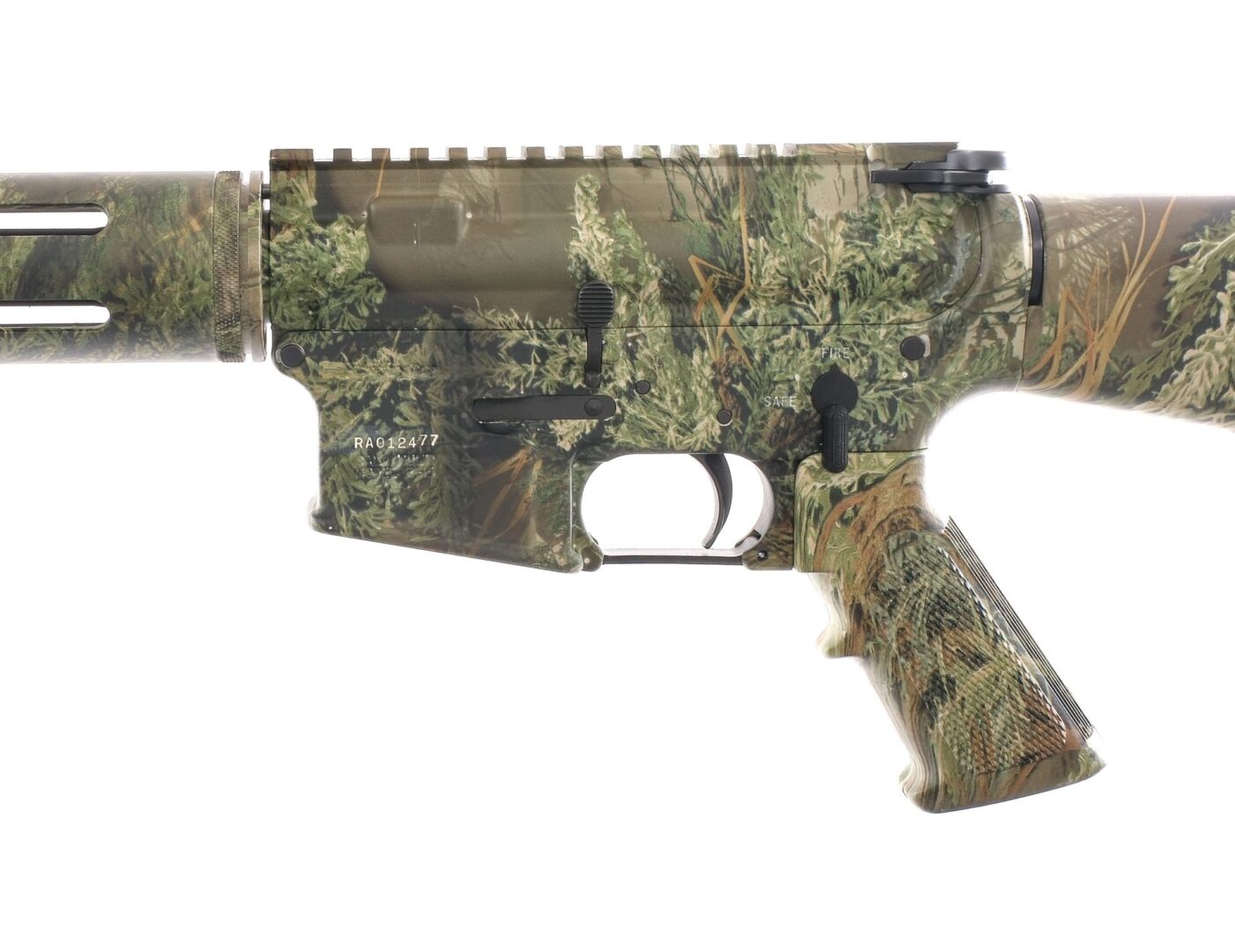 Description Remington R-15 chambered in 5.56 NATO with a 22.5″ fluted barrel. Low profile gas block. Complete MAX-1 camo finish. Textured aluminum handguard. Flat top upper receiver with standard AR-15 bolt catch, safety, and charging handle. Forged aluminum lower receiver with A2 pistol grip and fixed rifle stock with trap door butt plate. Does not come with a magazine. Front and rear sling eyelets. Must ship to a FFL holder. Check local laws regarding “Assault Weapons”. Condition: Good/Very good with very light handling and operational wear. Heavy spots of metal oxidation on the barrel. Spots of metal oxidation on the sling eyelets. Bright and clean bore with strong rifling. Barrel Length: 22.5″ Serial: RA012477 Manufacturer: REMINGTON ARMS COMPANY Caliber: 5.56x45mm NATO Model: R-15 Book# 03098