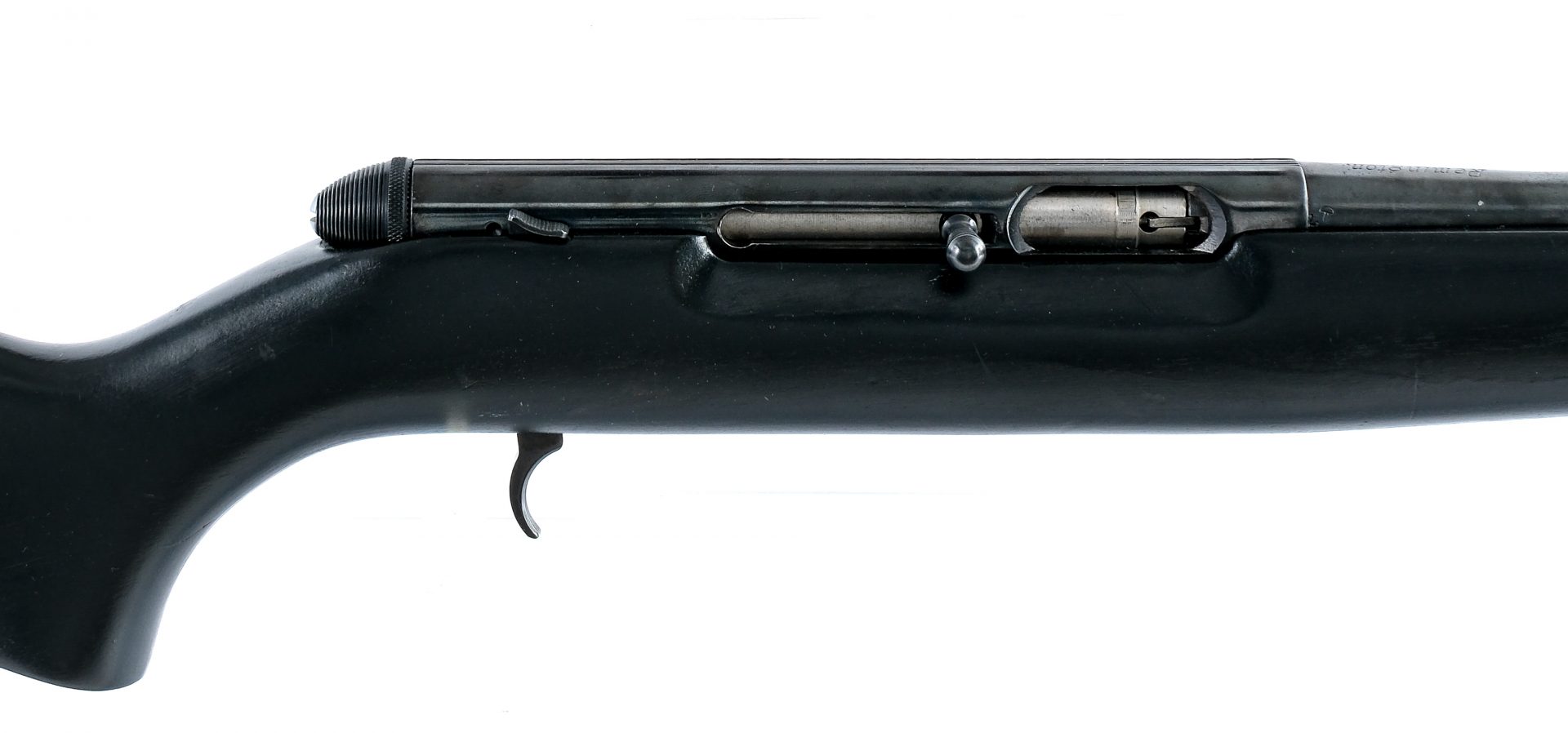 Description Remington rifles lot with two pieces. Remington Targetmaster Model 510-P in .22 Short, Long or Long Rifle with a single round capacity and a 25″ barrel. Smooth wood stock and front forend. Blued receiver and barrel. Rear right side of receiver safety switch. Rear adjustable peep hole and front fixed blade sight. Metal loops for mounting a shoulder sling. Remington Model 550-1 in .22 Short, Long or Long Rifle with a varied capacity and a 24″ barrel. Aftermarket black finished wood stock and front forend. Blued serrated trigger, receiver, magazine tube and barrel. Rear right side of receiver safety switch. Under barrel checkered magazine tube knob. Rear adjustable and front fixed blade sight. Must ship to a C&R or FFL holder. Condition: Fair scratches, wood dings, rust, refinished parts on the 550-1 also missing the trigger guard and repainted. Both rifled bores are clean. SOLD-AS-IS. Barrel Length: 24″ 25″ Serial: NVSN 43204 Manufacturer: Remington Caliber: .22 S L LR Model: 550-1 510-P Targetmaster Book# 05305 05303