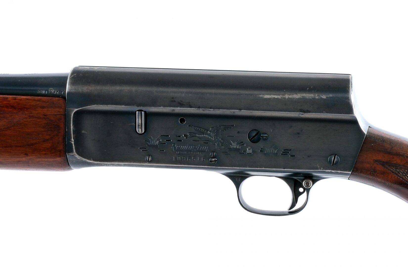 Description Remington The Sportsman in 20 gauge with a four round capacity and a 26″ FULL fixed choke barrel. Serrated composite butt plate. Checkered wood stock and smooth front forend. Blued trigger guard, trigger, receiver and barrel. Rear trigger guard push button safety. Right side of receiver serrated charging handle and action release button. Front fixed metal bead sight. Must ship to a C&R or FFL holder. Condition: Fair with scratches, wood dings, wood refinished, wood damage to the butt, finish wear/loss and handling wear. Very light rust to the smooth bore. Barrel Length: 26″ Serial: 1096516 Manufacturer: Remington Gauge: 20 Year: 1948 Model: The Sportsman Book# 05056