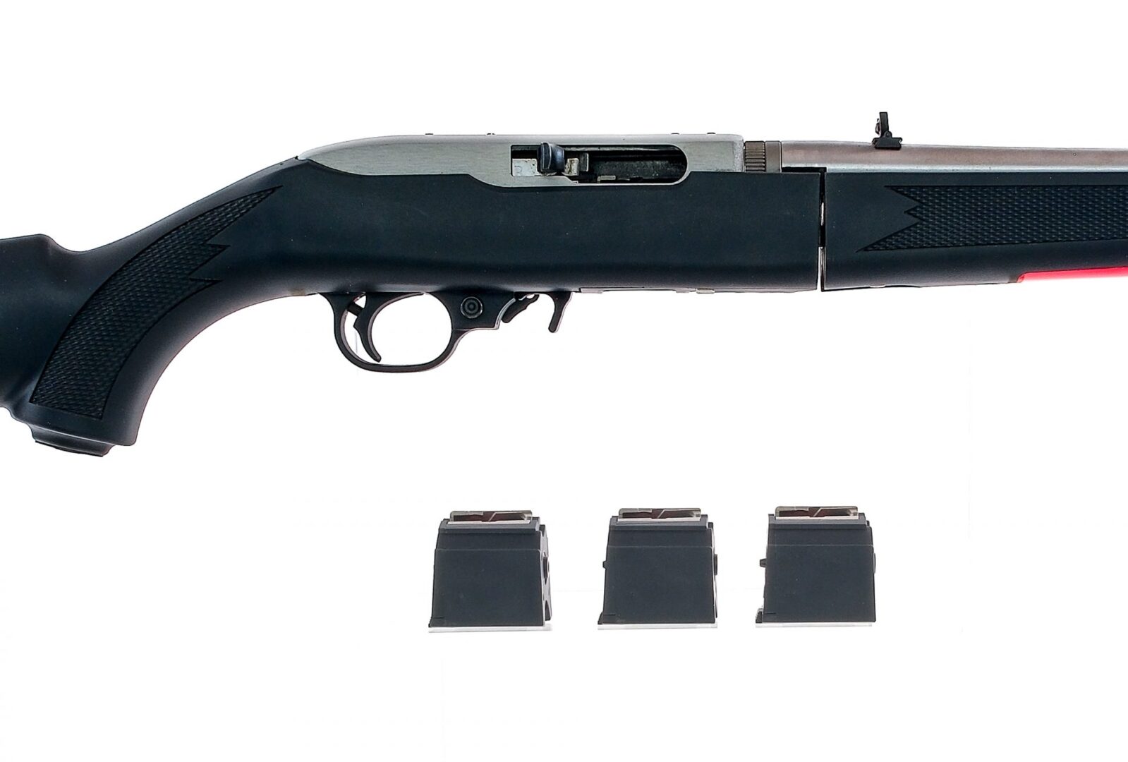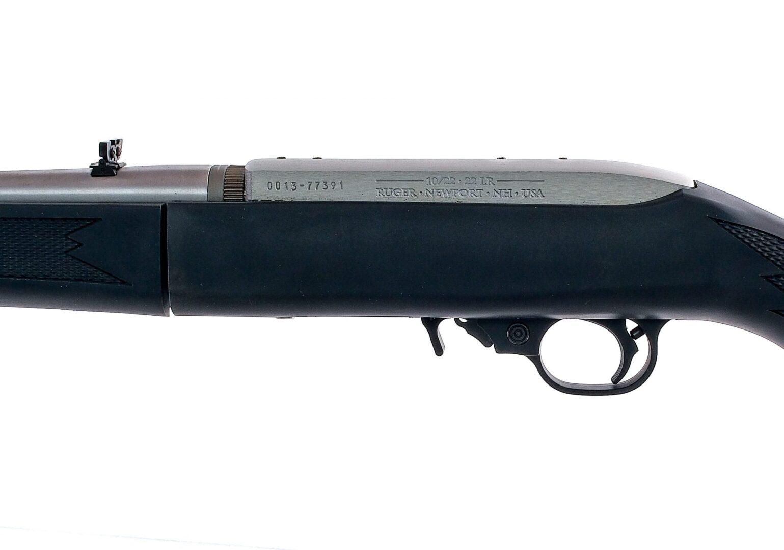 Description Ruger 10/22 Takedown chambered in .22 long rifle with three, ten round rotary magazines and a 18.5″ barrel. This rifle has an easy and simple take down and reassembly process. To takedown lock the bolt back, check if clear, and push the recess lever then twist and pull the assemblies apart. Once put back together the barrel and action are secured enough to keep your rifle zeroed. Stainless steel finish. Black textured composite stock and forend. Paddle magazine release and push button cross-bolt safety. Rear adjustable and fixed front sights. Top of the receiver is drilled and tapped to accept optics rail. Comes in a Ruger soft case, the case has pockets for the rifle when its broken down and for the magazines. Included in the case is a sling, cable lock, and three magazines. Must ship to FFL holder. Condition: Very good/Excellent with very light handling/operational wear. Bright and clean bore with strong rifling. Barrel Length: 18.5″ Serial: 0013-77391 Manufacturer: RUGER Year: 2019 Caliber: .22 Long Rifle Model: 10/22 Takedown Book# 03607