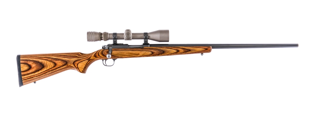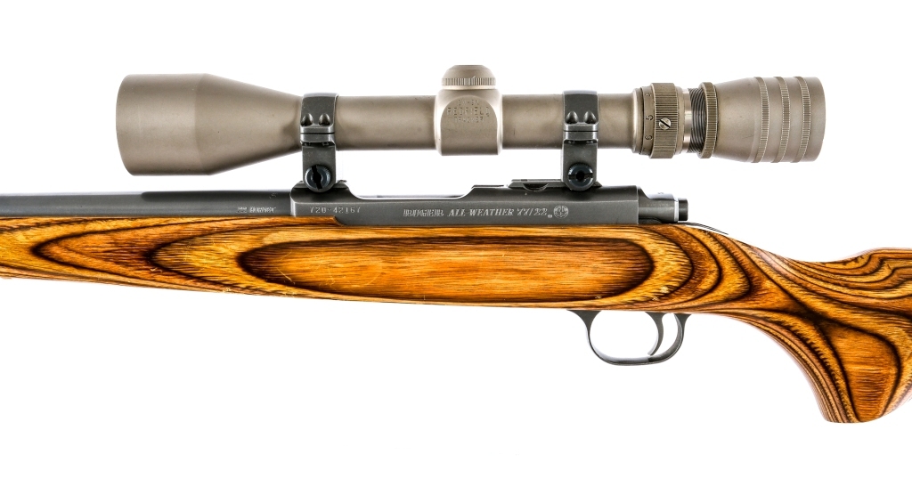 Description Ruger All Weather 77/22 in .22 Hornet missing its rotary magazine with a 24″ barrel. Made in Southport Connecticut in 1997. Rubber butt pad. Laminated wood stock. Ruger All weather finished barrel receiver, bolt, trigger, and trigger guard. Rear right side of receiver serrated safety lever. Mounted with a Redfield 3x-9x Tracker scope with clear glass and a duplex reticle. Front and rear metal eyelets for mounting a shoulder sling. Must ship to FFL holder. Condition: Excellent with light handling wear and missing magazine. Clean rifled bore. Barrel Length: 24 Serial: 720-42167 Manufacturer: Ruger Year: 1997 Caliber: .22 Hornet Model: All Weather M77/22 Book# 07347