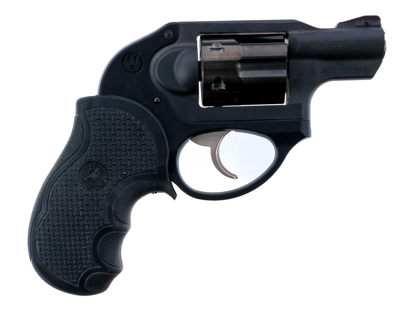 Description Ruger LCR chambered in .327 Federal Magnum with a six-shot cylinder and a 2″ barrel. Manufactured in 2022 with serial number 545-49057. Black finished polymer and aluminum frame. Double action only trigger. Blued fluted cylinder and serrated cylinder release. Textured Hogue rubber grips. Rear notch and pinned front ramp iron sights. Comes in its factory box with factory paperwork and lock. Must ship to a FFL holder. Condition: Very Good with light scratches and cosmetic handling wear. Light internal wear from operation. Clean rifled bore. Barrel Length: 2″ Serial: 545-49057 Manufacturer: RUGER Caliber: .327 Federal Magnum Model: LCR Book# 05376