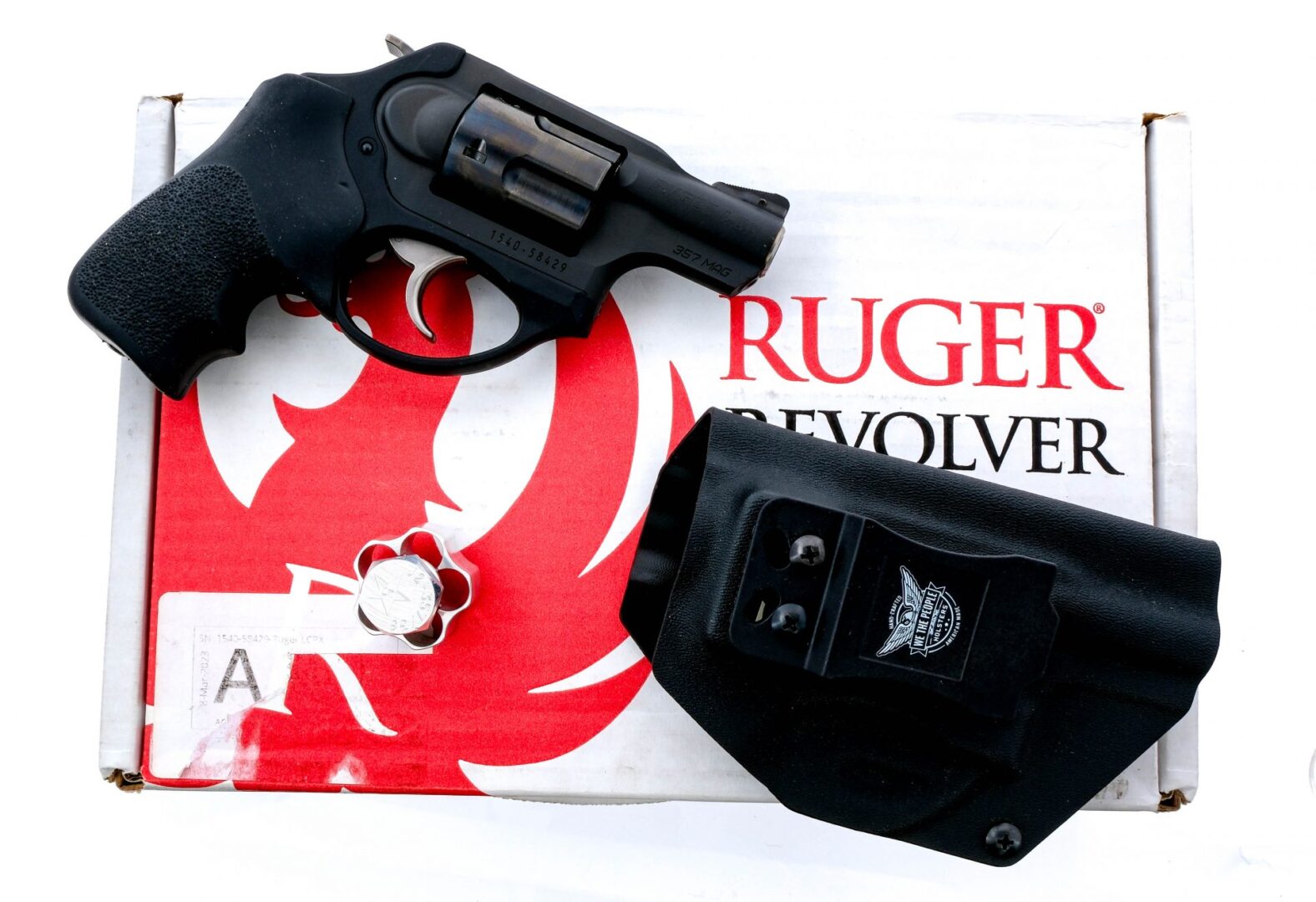 Description Ruger LCRX in .357 Magnum with a five round capacity and a 2″ barrel. Dimpled rubber grip. Black composite trigger guard. Matte black finished alloy frame. Blued cylinder. Unfinished trigger and checkered hammer. Left side of frame cylinder release. Rear notch and front fixed blade sight. Comes with factory box with matching serial number, paperwork, sticker, gun lock, aluminum speed loader, Lasermax/Ruger laser DOT, working and a We The People fitted composite belt holster. Must ship to a FFL holder. Condition: Like New with light handling wear. Clean rifled bore. Barrel Length: 2″ Serial: 1540-58429 Manufacturer: Ruger Year: 2022 Caliber: .357 Mag Model: LCR Book# 06111