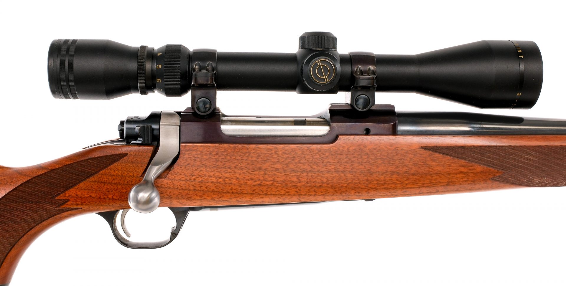 Description Ruger M77 MK II chambered in .22-250 Remington with a four round internal magazine and a 22″ barrel. Manufactured in 1996 with serial number 784-54045. Blued barrel, receiver, and trigger guard. Stainless bolt, bolt handle, and trigger. Rear push to fire bolt safety. The top of the receiver is grooved and mounted with a Simmons 8Point 3-9×40 scope. Wood stock with checkered forend, checkered pistol grip, and rubber recoil pad. Front rear sling eyelets. Must ship to a FFL holder. Condition: Very good with light scratches and handling wear on the finish. The receiver finish has plumed. Wear on the moving parts from operation. Light scratches and dings on the wood. Clean rifled bore. Barrel Length: 22″ Serial: 784-54045 Manufacturer: RUGER Year: 1996 Caliber: .22-250 Remington Model: M77 MK II Book# 05131