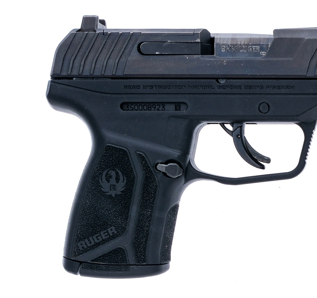 Description Ruger Max-9 chambered in 9mm with two, ten round removable magazines and a 3.2″ barrel. Manufactured in 2021 with serial number 350008923. Integrated glass filled nylon frame with textured grip. Striker fired single action trigger with trigger shoe safety. Frame mounted manual thumb safety. Black finished slide with front and rear serrations. Rear U-notch and green fiber optic front sight. Rear optics cut. Must ship to a FFL holder. Condition: Very Good with light scratches and cosmetic handling wear. Normal internal wear from operation. Bright and clean bore with strong rifling. Barrel Length: 3.2″ Serial: 350008923 Manufacturer: RUGER Year: 2021 Caliber: 9x19mm Parabellum Model: Max-9 Book# 07135