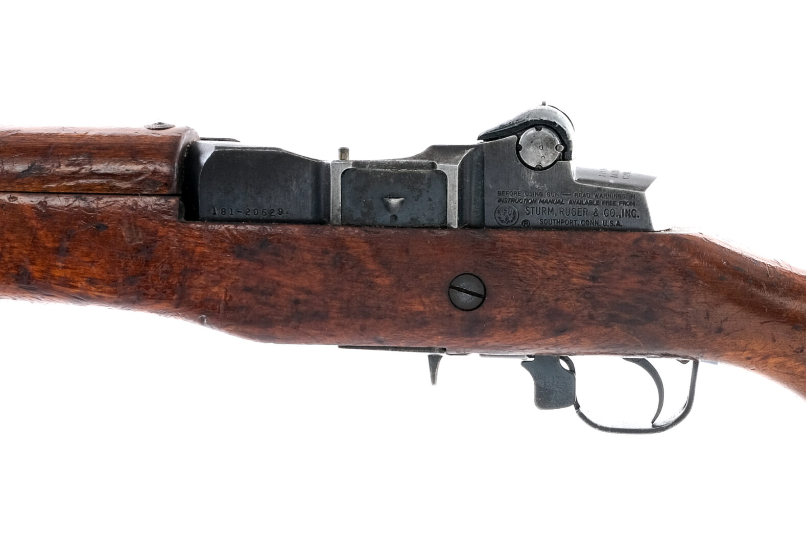 Description Ruger Mini 14 in .223 caliber with one, five round removable magazine and a 18″ barrel. Import marked on the under side of barrel by C.A.I. ALB VT. Black composite butt plate. Smooth wood stock. Blued trigger guard, receiver and barrel. Front trigger guard safety. Magwell located magazine release. Right side of receiver charging handle. Metal loops for mounting a shoulder sling. Rear adjustable and front fixed blade sight. Small star tac into the top of receiver wood. Must ship to a C&R or FFL holder. Condition: Good with scratches, finish wear/loss and heavy wood dings/dents. Missing the receiver cross bolt female end. The rifled bore has a touch of rust with strong visible rifling. Barrel Length: 18″ Serial: 181-20529 Manufacturer: Ruger Year: 1979 Caliber: .223 Model: Mini 14 Book# 01948