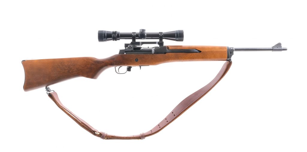 Description Ruger Mini 14 in .223 with one, five round removable magazine and a 18″ barrel. Black composite butt plate. Smooth wood stock and front forend. Blued trigger guard, untextured trigger, receiver, charging handle and barrel. Trigger guard located safety switch. Magwell located magazine release lever. Front fixed blade sight. Metal loops and a leather shoulder sling. Comes mounted with a Bushnell Sportview waterproof scope 3x 9x 32 with clear glass and a duplex reticle. Must ship to a FFL holder. Condition: Good/Very good with light scuffs, touches of rust on the muzzle and handling wear. Clean rifled bore. Barrel Length: 18″ Serial: 182-67390 Manufacturer: Ruger Year: 1982 Caliber: .223 Model: Mini 14 Book# 8-578