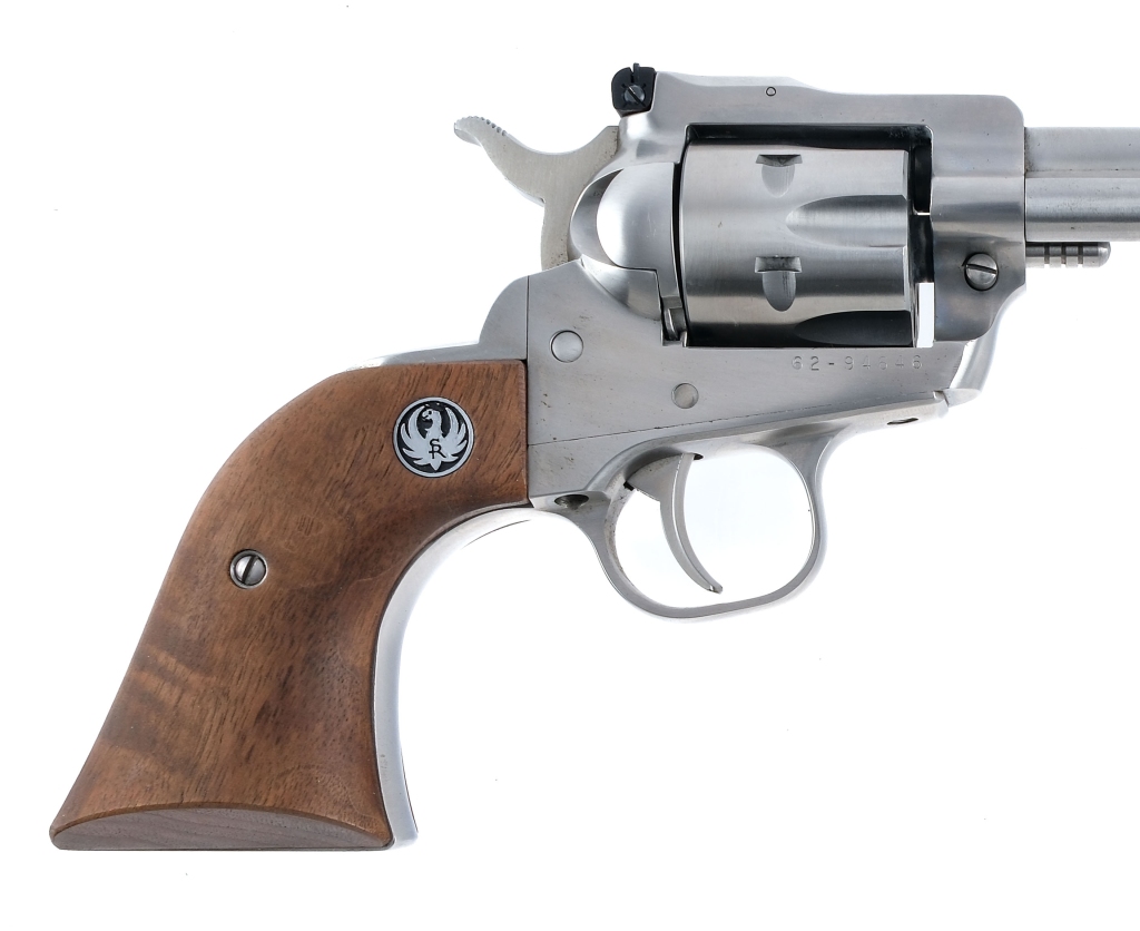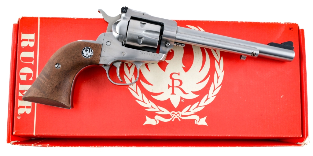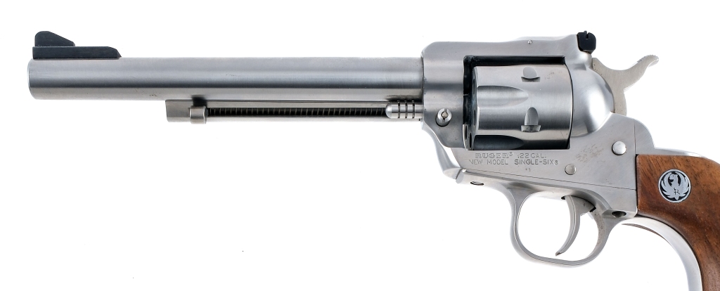 Description Ruger New Model Single-Six chambered in .22 long rifle with a six-shot cylinder and a 6.5″ barrel. Stainless steel barrel, frame, fluted cylinder, single action trigger, and hammer. Smooth wood grips. Adjustable rear sight and fixed front blade. Comes in its factory box. Must ship to a FFL holder. Condition: Very Good with light scratches and cosmetic handling wear. Light cylinder turn line and internal operational wear. Some small spots of metal oxidation. Bright and clean bore with strong rifling. Barrel Length: 6.5″ Serial: 62-94646 Manufacturer: RUGER Caliber: .22 Long Rifle Model: Single-Six Book# 07889