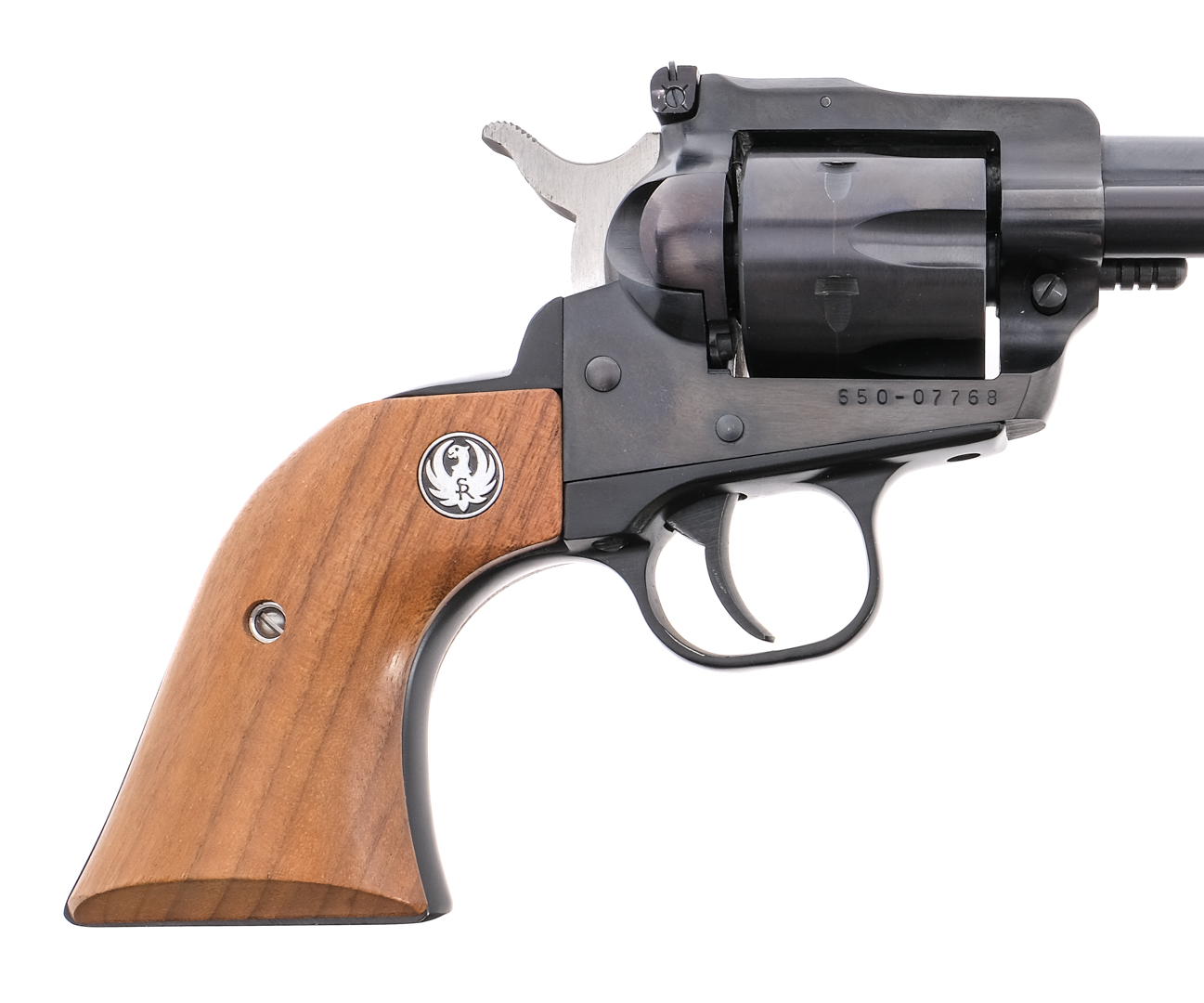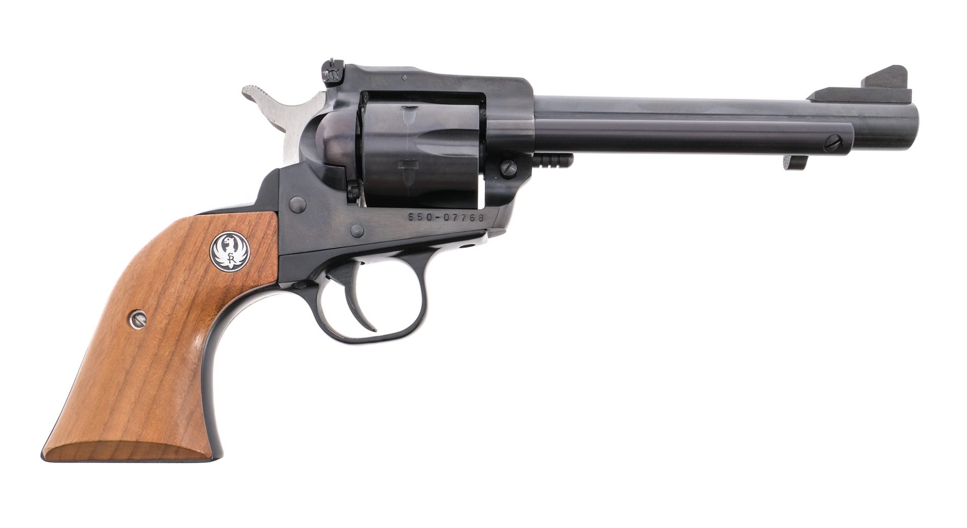 Description Ruger New Model Single-Six chambered in .32 Harrington & Richardson magnum with a six-shot cylinder and a 5.5″ barrel. Blued barrel, frame, cylinder, smooth trigger, and backstrap. Stainless and blued ribbed hammer. Smooth wood Ruger grips. Front and rear adjustable sights. Comes in factory Ruger box with manual. Must ship to FFL holder. Condition: Very Good/Excellent with light handling wear and a clean rifled bore. Light cylinder turn line. Barrel Length: 5.5″ Serial: 650-07768 Manufacturer: RUGER Year: 1985 Caliber: .32 H&R Magnum Model: New Model Single Six Book# 10-547