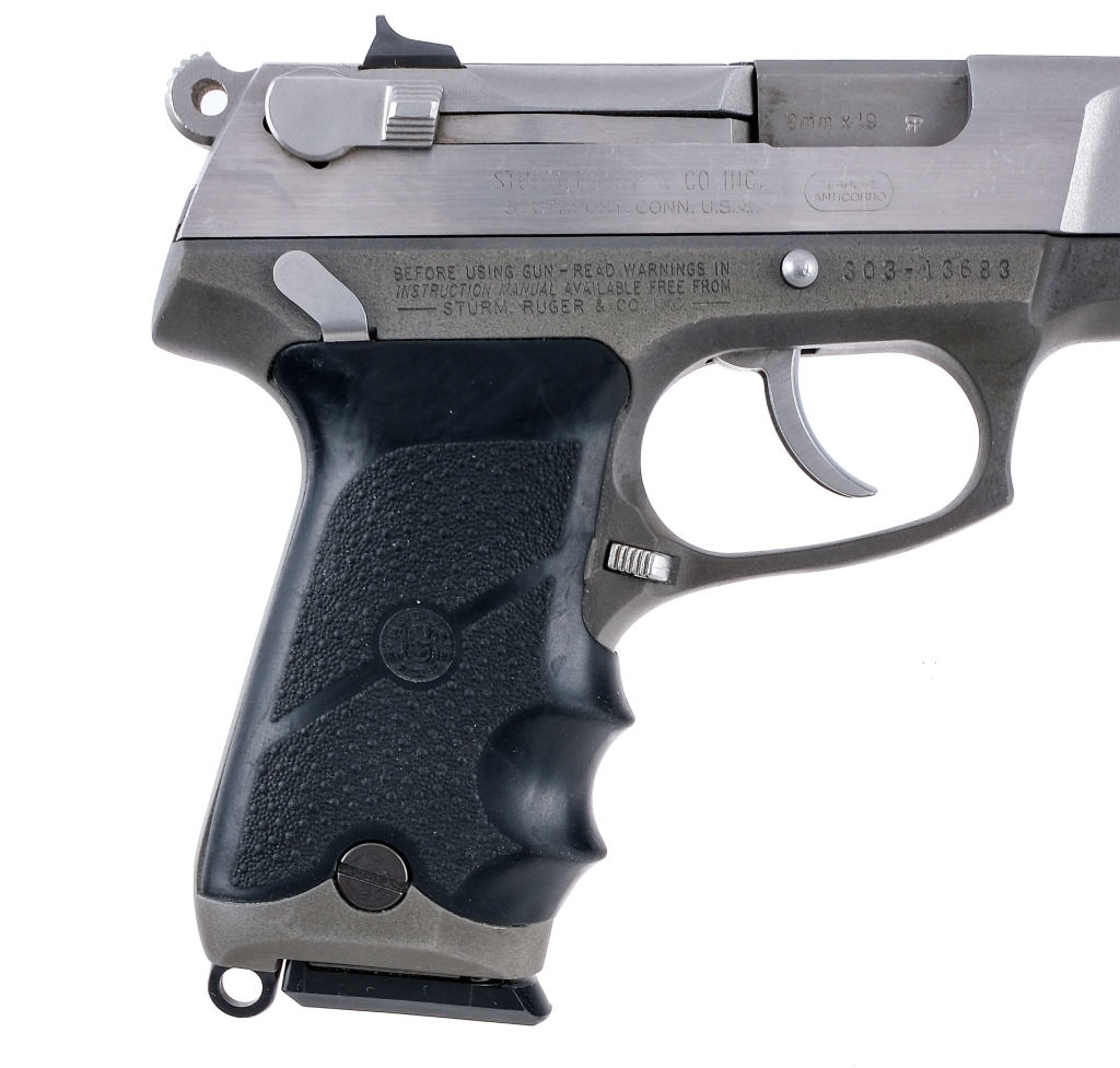 Description Ruger P85 MK II chambered in 9mm with one, fifteen round removable magazine and a 4.5″ barrel. Manufactured in 1991 with serial number 303-13683. Matte gray finished alloy frame with pebble textured Hogue grips. Stainless double action trigger and hammer. Stainless steel slide with mounted ambidextrous de-cocker/safety lever. White three-dot iron sights. Must ship to a FFL holder. Check local laws regarding “High Capacity” magazines BEFORE bidding. Condition: Very Good with light scratches and cosmetic handling wear. Light internal wear from operation. Bright and clean rifled bore. Barrel Length: 4.5″ Serial: 303-13683 Manufacturer: RUGER Year: 1991 Caliber: 9x19mm Parabellum Model: P85 MK II Book# 08099