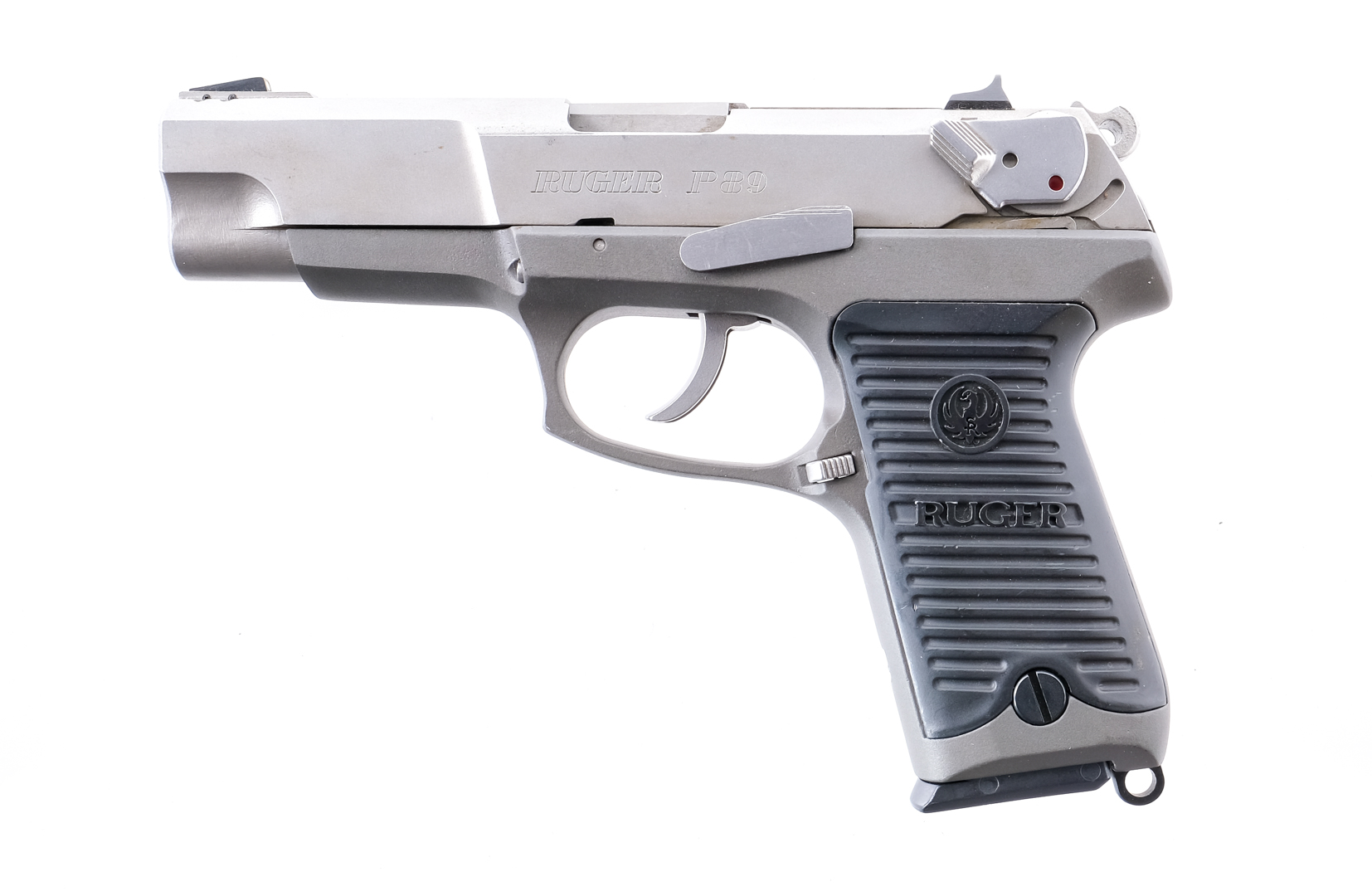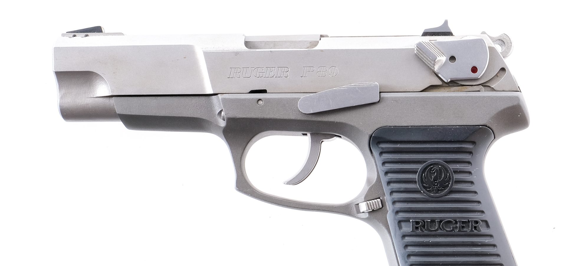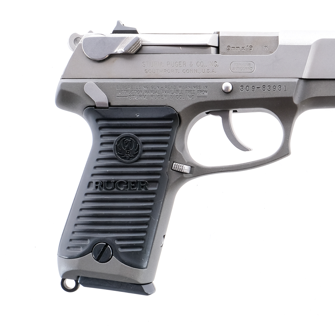 Description Ruger P89 in 9mm with one, fifteen round removable magazine and a 4.5″ barrel. Serrated composite grip plates. Matte finished metal frame. Matte finished stainless steel slide and barrel. Untextured trigger and serrated hammer. Magwell located lanyard loop. Lower frame located serrated ambidextrous magazine release. Left side of frame serrated slide release. Rear slide serrated ambidextrous safety switch. Front and rear fixed white DOT sights. Check Local/State Laws on HIGH CAPACITY MAGAZINES before bidding. Must ship to a FFL holder. Condition: Good/Very Good with light scratches and handling wear. Clean rifled bore. Barrel Length: 4.5″ Serial: 309-83931 Manufacturer: Ruger Year: 1994 Caliber: 9mm Model: P89 Book# X-129