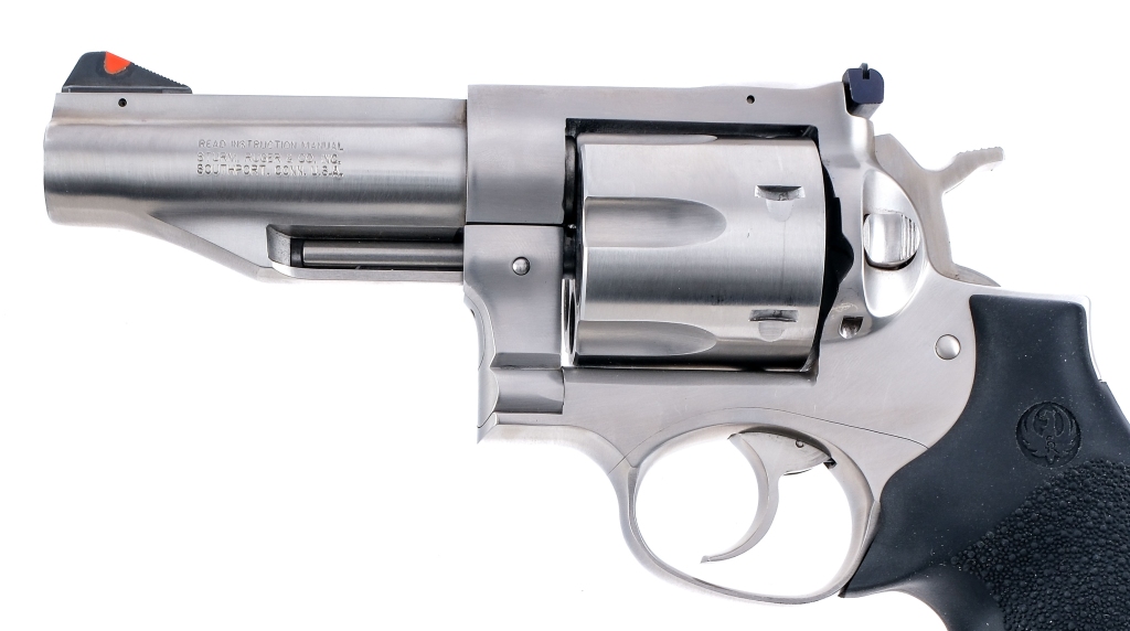 Description Ruger Redhawk chambered in .45 Colt with a six-shot cylinder and a 4″ barrel. Manufactured in 2007 with serial number 503-53886. Stainless steel barrel, frame, fluted cylinder, double action trigger, and hammer. Pebble textured Hogue rubber grips with finger grooves. Adjustable rear white U-notch and red ramp front blade. Comes in its serial number matching box. Must ship to a FFL holder. Condition: Very Good/Excellent with light scratches and handling wear. Light cylinder turn line and general operational wear. Bright and clean rifled bore. Barrel Length: 4″ Serial: 503-53886 Manufacturer: RUGER Year: 2007 Caliber: .45 Colt Model: Redhawk Book# 08052