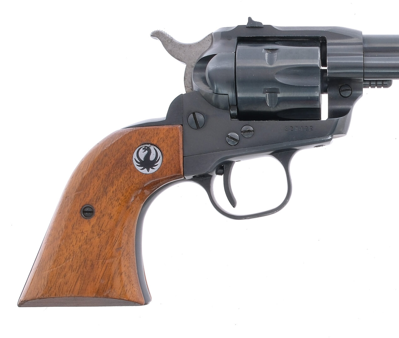 Description Ruger Single Six in .22 Winchester Magnum Rimfire (.22 Mag) with a six round capacity and a 6.5″ barrel. Comes with a .22 Long Rifle cylinder and is missing the .22 Magnum cylinder. Smooth wood grip plates. Blued trigger guard, trigger, hammer, cylinder and barrel. Right side of frame loading gate. Under barrel located cylinder release pin and extractor rod. Front and rear fixed sights. Must ship to a C&R or FFL holder. Condition: Good/Very Good with light scratches, finish wear/loss and handling wear. Clean rifled bore. Barrel Length: 6.5″ Serial: 323422 Manufacturer: Ruger Year: 1962 Caliber: .22 WMR Model: Single Six Book# 02241