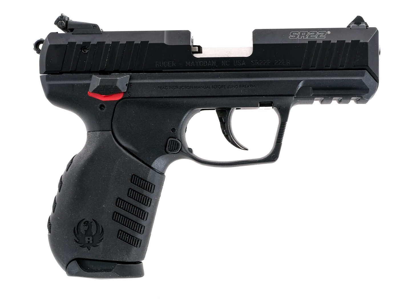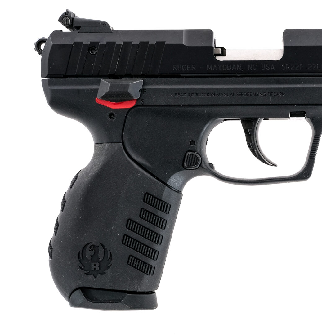 Description Ruger SR-22 chambered in .22 long rifle with two, ten round removable magazines and a 3.5″ stainless steel barrel. Polymer frame with interchangeable textured rubber grips and under barrel accessories rail. Single/double action trigger with exposed hammer. Ambidextrous push button magazine release and manual thumb safety/de-cocking lever. Aluminum slide with front and rear cocking serrations and chamber viewport. Adjustable white three dot sights. Comes in its factory box with matching serial number, factory paperwork, soft case, chamber lock, spare magazine floor plates, extra grip, and two magazines. Must ship to FFL holder. Condition: Like new with no noticeable cosmetic wear and appears to have been fired very little if at all. Clean rifled bore. Barrel Length: 3.5″ Serial: 365-23899 Manufacturer: RUGER Year: 2015 Caliber: .22 Long Rifle Model: SR22 Book# 01992