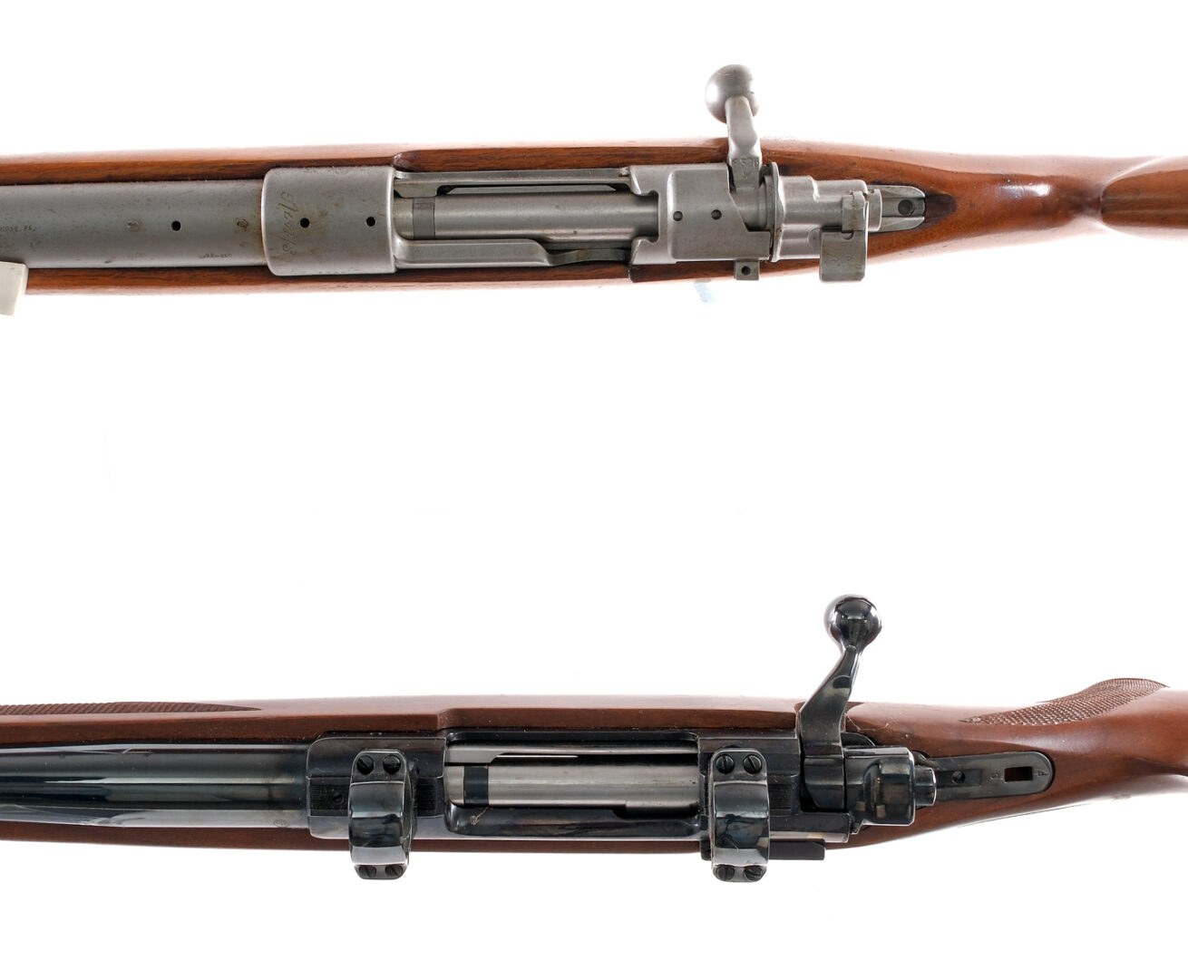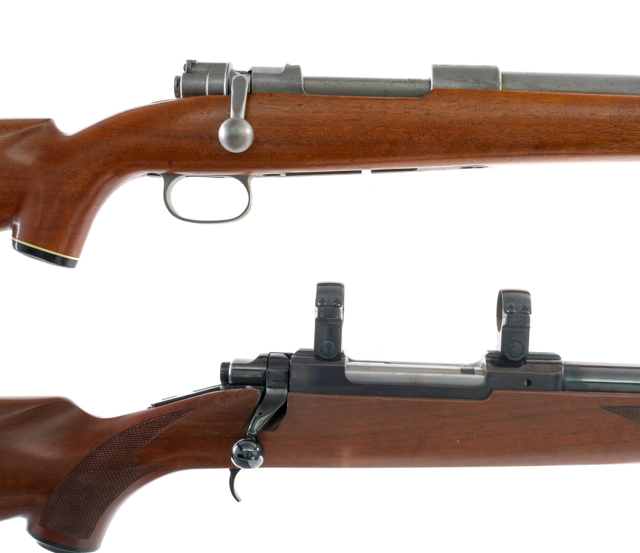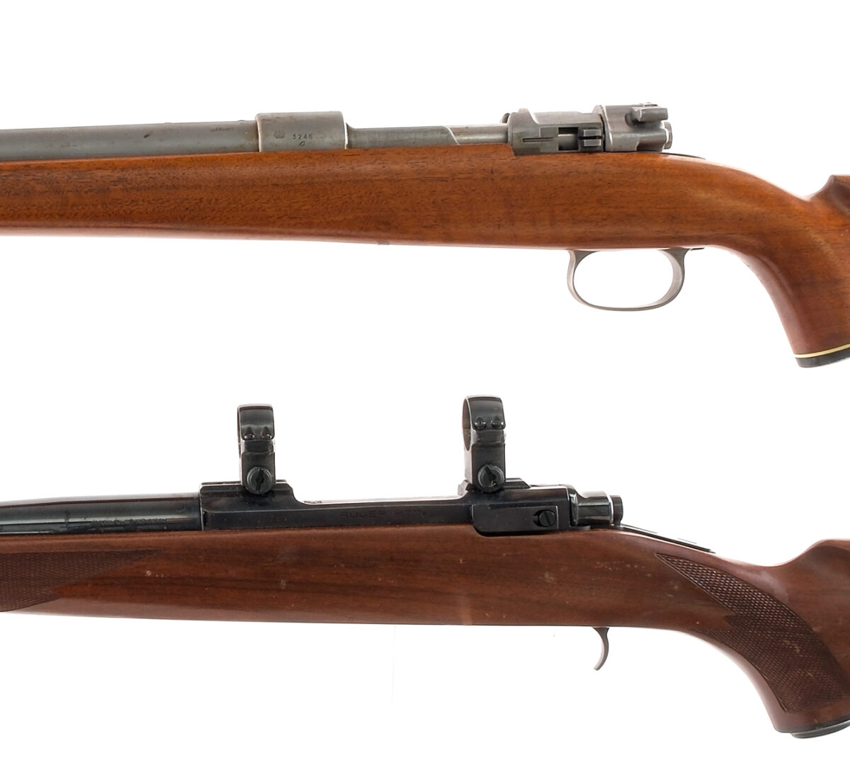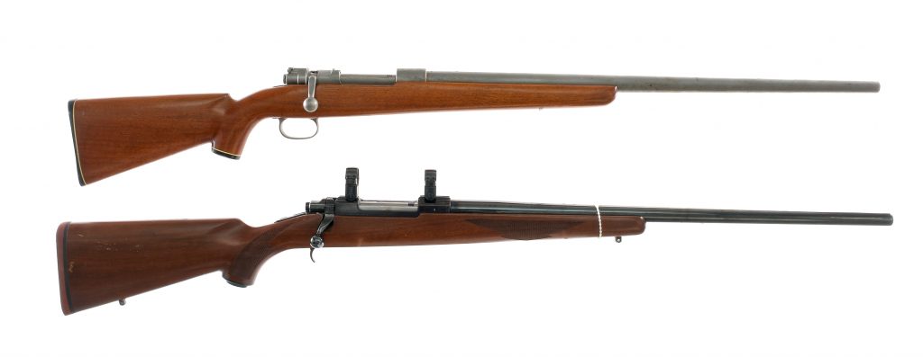 Description Estate Rifle lot with two rifles. Custom made German Mauser action rifle by L.R. Wallack in .22-250 Remington with a five round capacity and a 26″ barrel. Smooth wood stock and front forend. Matte silver finished trigger guard, receiver and barrel. No fixed sights, receiver and barrel are drilled and tapped for optics. Ruger M77 in .280 Remington or 7mm Express Remington with a four round capacity and a 24″ barrel. Checkered wood stock and front forend. Blued trigger, receiver and barrel. Mounted with 1″ scope rings. Metal eyelets for mounting a shoulder sling. Must ship to a FFL holder. Condition: Poor with missing parts, scratches, finish wear/loss and rust. Both rifles have a few small spots of rust to the rifled bores. Sold AS-IS. Barrel Length: 24″ 26″ Serial: 74-78681 3246 Manufacturer: L.R. Wallack Ruger Caliber: .280 Rem 7mm Exp Rem .22-250 Rem Model: M77 Mauser Book# 01326 01251