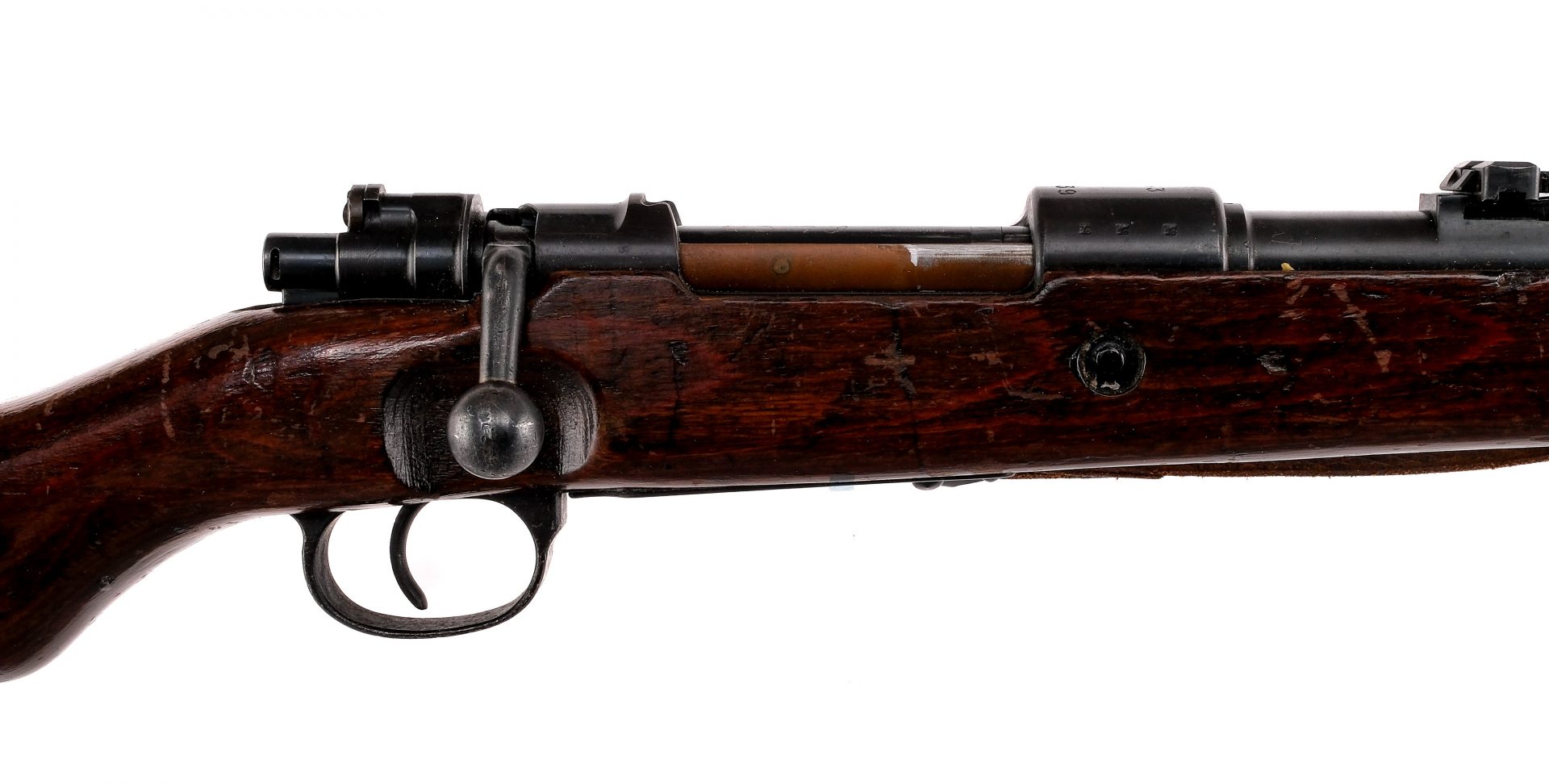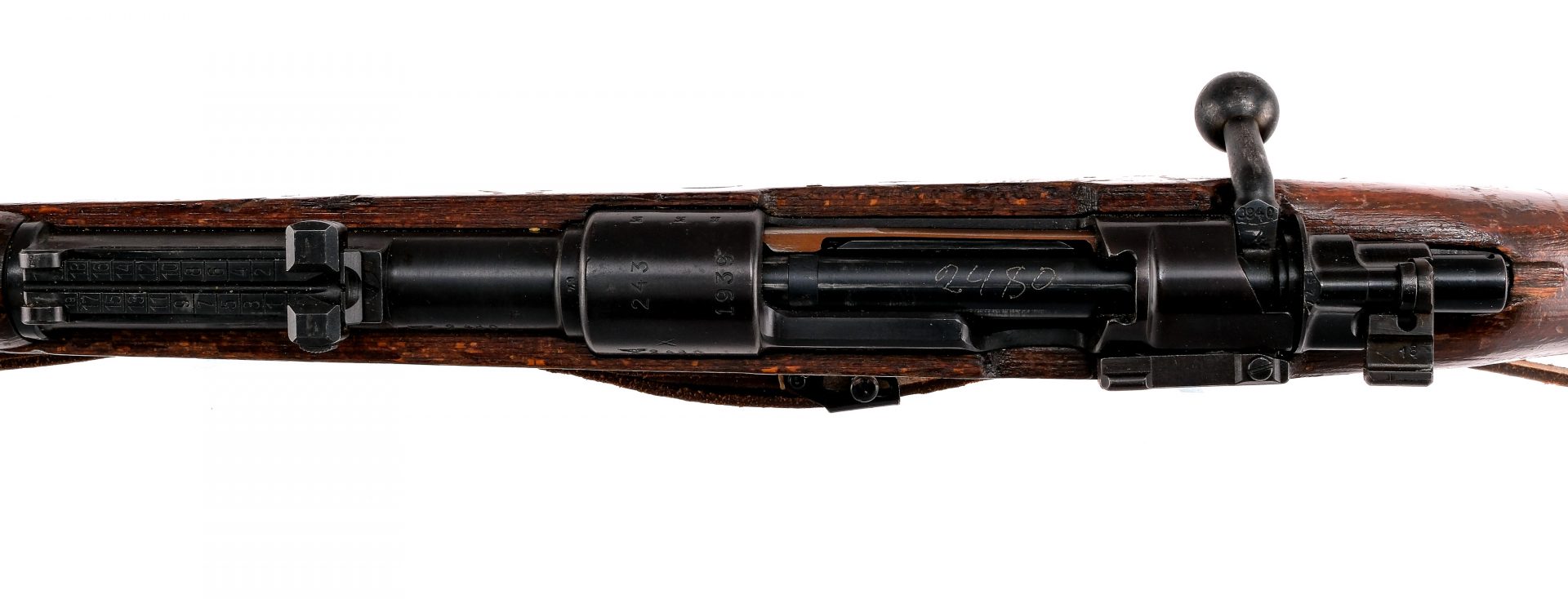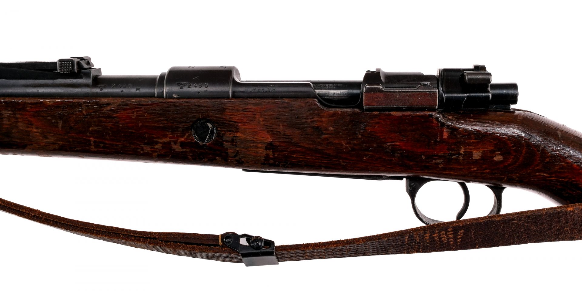 Description Russian Capture 243 Code Mauser, Borsigwalde K98 chambered in 8mm Mauser with a five round internal magazine capacity and a 24″ barrel. Early war K98 manufactured in 1938 and imported by R Guns, marked on the right side of the barrel. Front bayonet lug and cleaning rod. Milled front barrel bands. Adjustable rear ladder sight and fixed front blade. Three position flag bolt safety. Mismatched stamped magazine floor plate. Blued/black finish with smooth wood to forend and stock with non cupped early war butt plate. Front and rear sling mounts with leather sling. The barrel, receiver, and stock are serial number matching. The bolt body and the trigger guard are matching in electro pencil. The rest of the parts are mis matched. Waffenamt26 stamped twice on the barrel and three time on the receiver. Third Reich eagle stamps on the barrel and receiver. “WaA1” marked on the butt plate. Multiple other Waffenamt on the non matching parts. Russian capture “x” mark on the receiver. “7,9” Is marked on the barrel shank. Faded “WaA749″ Waffenamt stamped twice on the stock with H Heer marking as well. Comes with metal barrel cover. Must ship to a FFL or C&R holder. Condition: Good/Very good with general scratches, scuffs, and finish wear from handling and operation. Varying spots of metal oxidation and small spots of pitting. The butt plate is in the white. Scratches, scuffs, and dings on the stock. Bright and clean bore with strong visible rifling. Barrel Length: 24” Serial: 2480t Manufacturer: Mauser, Borsigwalde Year: 1938 Caliber: 7.92x57mm Mauser Model: K98 Book# 04030