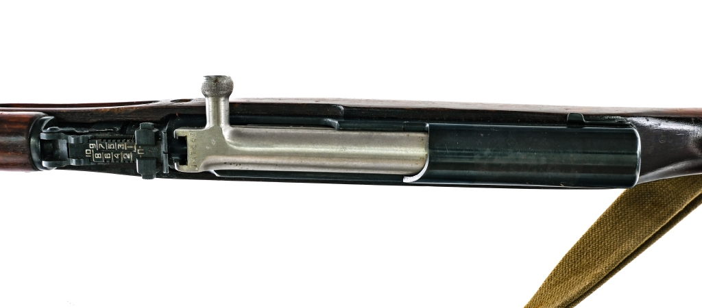 Description Russian SKS chambered in 7.62x39mm with a ten round integral magazine and a 20″ barrel. Imported by Century Arms, marked on the side of the barrel. Front cleaning rod and folding bayonet. Blued barrel, gas tube, receiver, dust cover, magazine, and trigger guard. Adjustable rear leaf sight and front post. Stainless bolt carrier with knurled charging handle. Trigger guard safety lever. Smooth wood top forend and pistol grip stock with black trapdoor butt plate. The top of the dust cover has had the marking buffed off. Serial number matching bayonet, gas tube, receiver, bolt, dust cover, trigger guard, magazine, and stock. The bayonet and gas tube serial numbers are scribed/elector penciled. Must ship to a FFL or C&R holder. Condition: Good/Very good with light scratches, high edge wear, and cosmetic handling wear. Spots and speckling of metal oxidation. Heavier spots of metal oxidation on the magazine and sling swivels. Light internal wear from operation. Light scratches and scuffs on the stock. Bright and clean bore with strong visible rifling. Barrel Length: 20″ Serial: 7449 Manufacturer: Russia Caliber: 7.62x39mm Model: SKS Book# 08412