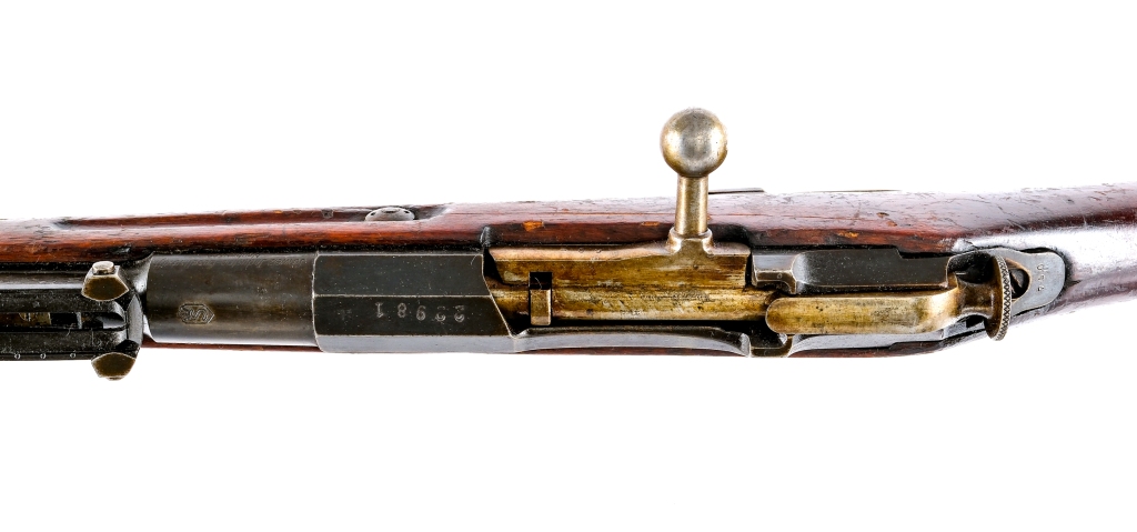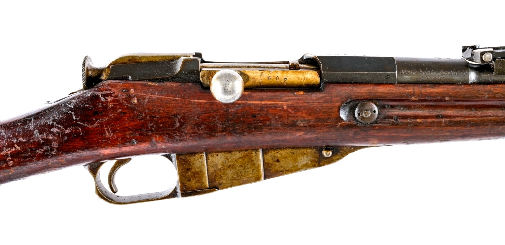 Description Sako M24 Mosin Nagant in 7.62x54mmR with a five round internal magazine and a 31.5″ SIG barrel. No import mark on this rifle. Manufactured between 1924 and 1928, and imported by Century Arms C.A.I., marked on the front of the barrel. Blued butt plate. Smooth wood stock and front forend. Rear bolt twist safety. Under barrel removable cleaning rod. Metal loops with leather bands to mount shoulder sling. Swiss SIG barrel marked “Schweiz-Industrie Gesellschaft Neuhausen”. The barrel shank is also marked with the SAKO workshop stamp and SA. The barrel and bolt are serial number matching with the original serial S 209. The butt plate, stock and magazine floor plate have mismatched serial numbers to the rifle. Must ship to a FFL or C&R holder. Condition: Fair with scratches, heavier wood dings, woo damage to the butt stock, finish wear, wood crack to the top barrel cover and handling wear. Clean rifled bore. SOLD AS-IS. Barrel Length: 31.5″ Serial: 22981 Manufacturer: Sako Caliber: 7.62x54mmR Model: M24 Mosin Nagant Year-Range 1924-1928 Book# 06784