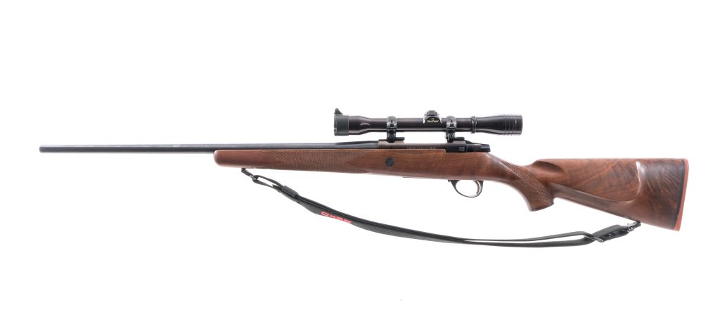 Description Sako Forester L-579 in .243 caliber with a five round capacity and a 23″ barrel. Made in Finland. Rubber butt pad. Checkered Monte Carlo style wood stock and front forend. Blued trigger guard, magazine floor plate, bolt, receiver and barrel. Rear right side of receiver located safety switch. Left rear side of receiver serrated bolt release. Metal swivel loops and a Sako nylon shoulder sling. No fixed sights, comes mounted with a 4x Redfield scope with clear glass and a duplex reticle. Must ship to a FFL holder. Condition: Very good/Excellent with light scuffs and handling wear. Clean rifled bore. Barrel Length: 23″ Serial: 309276 Manufacturer: Sako Caliber: .243 Model: Forester L579 Book# 8-455