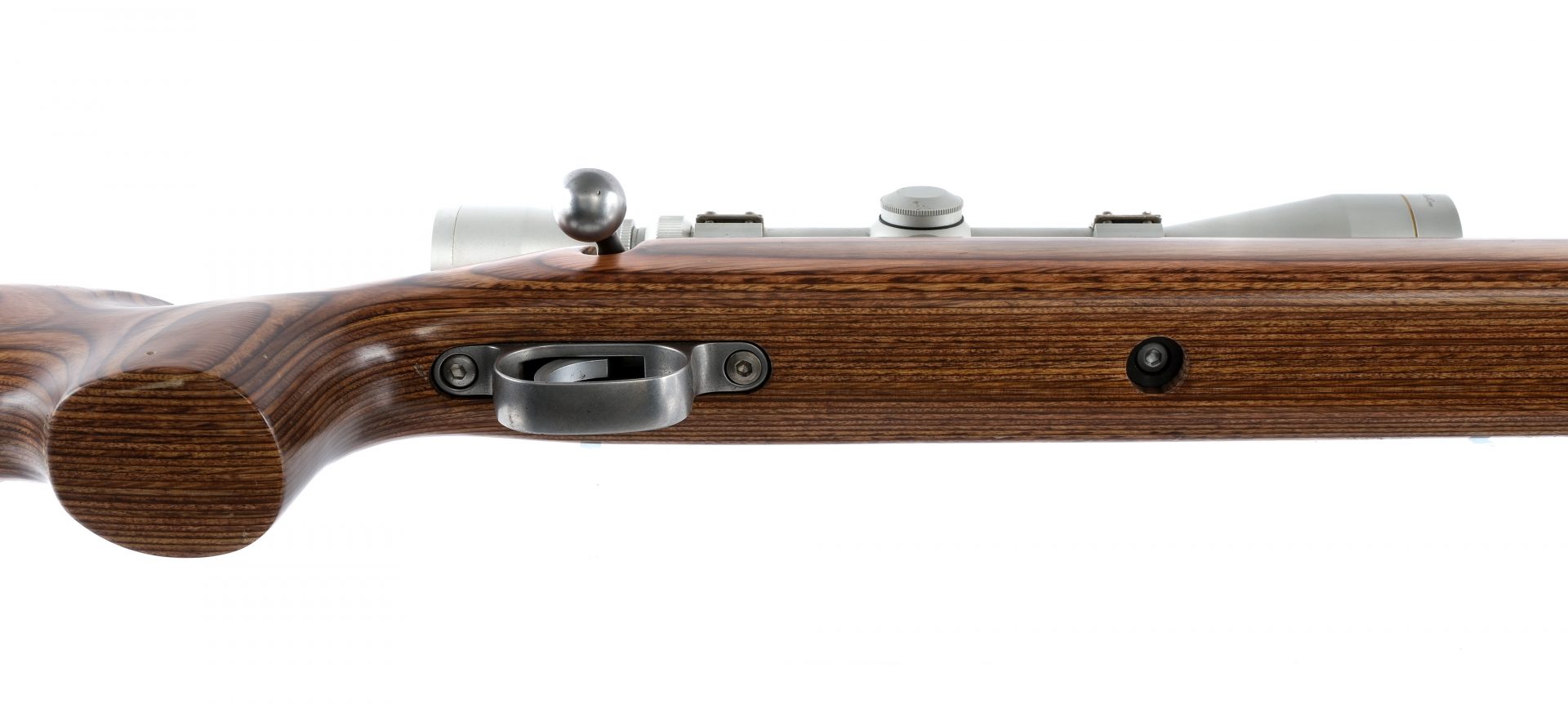 Description Savage Arms Model 12 in .308 Winchester with a four round capacity and a 26″ fluted Bull barrel. Rubber butt pad. Large laminated wood stock and front forend. Unfinished steel trigger, bolt, receiver and barrel. Rear receiver tang slide button safety. Rear right side of receiver bolt release. No fixed sights. Mounted with a Leupold Vari-X II 3-9x40mm scope with clear glass and a duplex reticle. Metal eyelets for mounting a shoulder sling. Must ship to a FFL holder. Condition: Very Good/Excellent with light scratches and handling wear. Clean rifled bore. Barrel Length: 26″ Serial: G020408 Manufacturer: Savage Arms Caliber: .308 Win Model: 12 Book# 05564