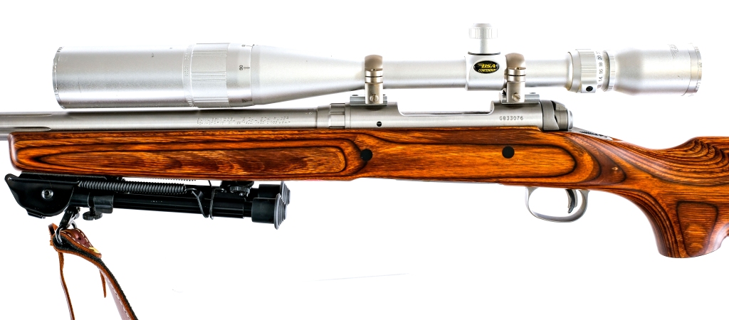 Description Ruger Model 12 Varmint in .204 Ruger with one, four round removable magazine and a 26″ fluted barrel. Rubber butt pad. Smooth laminated wood stock. Matte silver finished trigger guard and bolt. Stainless steel receiver and barrel. Blued trigger. Rear right side of receiver safety. No fixed sights. Top of receiver mounted BSA Contender 6-24×40 scope with clear glass and a duplex reticle. Front forend mounted fold out adjustable bipod. Comes with a Bandera leather shoulder sling. Front of muzzle has removable Limbsaver De-Resonator. Must ship to a FFL holder. Condition: Excellent with light scuffs and handling wear. Clean rifled bore. Barrel Length: 26″ Serial: G833076 Manufacturer: Savage Arms Caliber: .204 Ruger Model: 12 Varmint Book# 07843