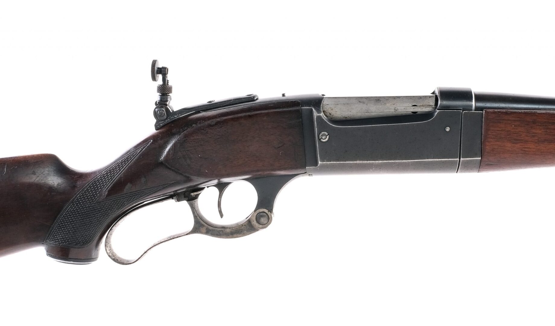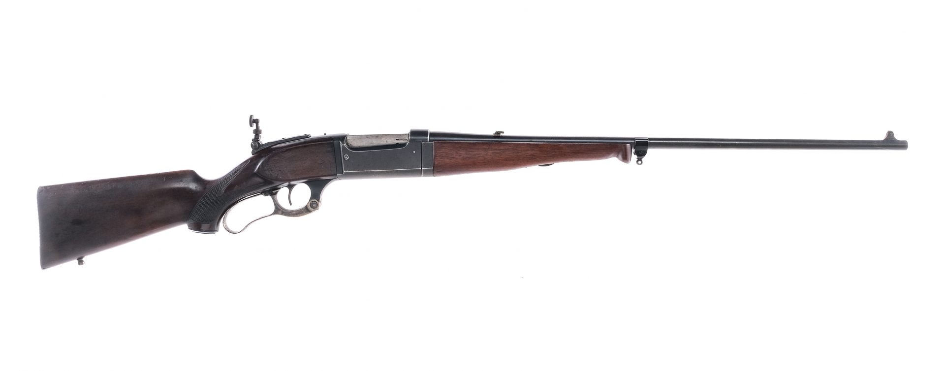 Description Savage Model 1899 Take-Down in .300 Savage with a six round capacity and a 24″ barrel. Serrated metal butt plate. Checkered wood stock and Schnabel style front forend. Case colored hand lever. Blued serrated trigger, receiver and barrel. Rear flip up adjustable and front fixed blade sight. Rear receiver tang mounted Lyman adjustable peep hole sight. Receiver is drilled and tapped for optics. Williams barrel mounted eyelet for mounting a shoulder sling. Must ship to a C&R or FFL holder. Condition: Good with replaced foregrip, scratches, spots of rust and handling wear. Clean rifled bore. Barrel Length: 24″ Serial: 253423 Manufacturer: Savage Year: 1923 Caliber: .300 Savage Model: 1899 Take-Down Book# 01337