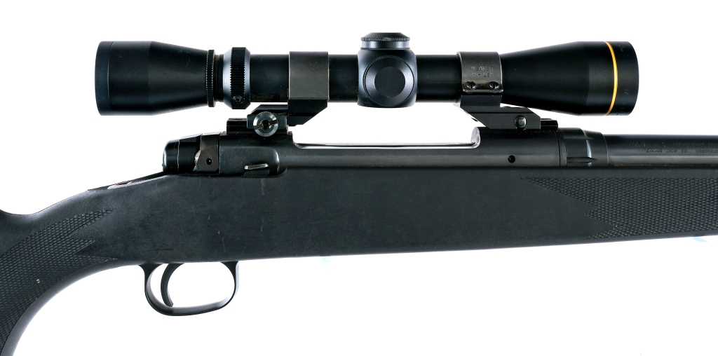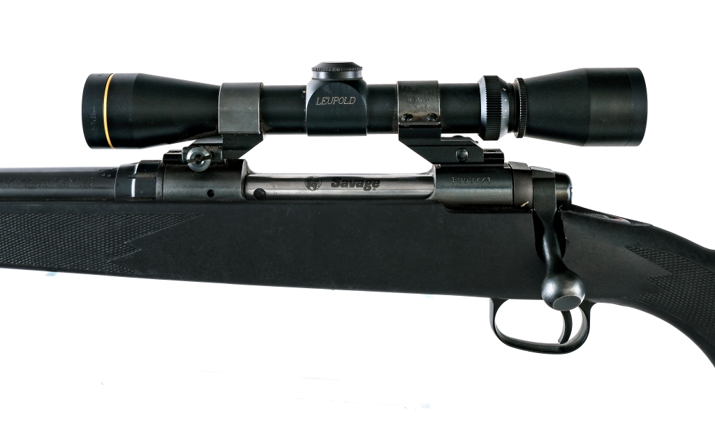Description Savage Model III Left Hand in .338 Winchester Magnum with a four round capacity and a 24″ tapered barrel. Rubber butt pad. Checkered composite stock and front forend. Blued trigger, bolt handle, receiver and barrel. Rear receiver tang located slide button safety. No sights, receiver mounted Leopold VX-11 2-7x33mm scope with clear glass and a duplex reticle. Metal eyelets for mounting a shoulder sling. Must ship to a FFL holder. Condition: Very Good with light scuffs, dings and handling wear. Clean rifled bore. Barrel Length: 24″ Serial: F353771 Manufacturer: Savage Caliber: .338 Win Mag Model: 111 Left Hand Book# 07873