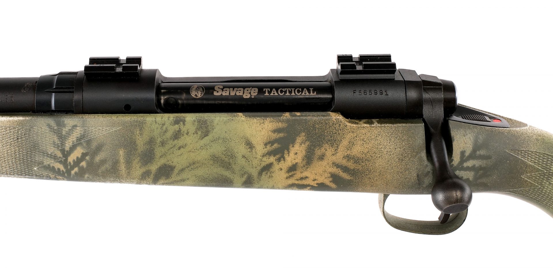 Description Savage Arms Left Hand Model 110 Tactical in 7mm Remington Magnum with a four round capacity and a 24″ heavy Bull barrel. Rubber butt pad. Camo print composite stock and front forend. Blued trigger, bolt, receiver and barrel. Rear receiver tang slide button safety. Rear right side of receiver action release. No fixed sights. Top of receiver has optics rails to install scope. Metal eyelets for mounting a shoulder sling. Must ship to a FFL holder. Condition: Good/Very Good with light scratches, dings and tiny touches of rust. Clean rifled bore. Barrel Length: 24″ Serial: F565991 Manufacturer: Savage Arms Caliber: 7mm Rem Mag Model: 110 LH Tactical Book# 04904