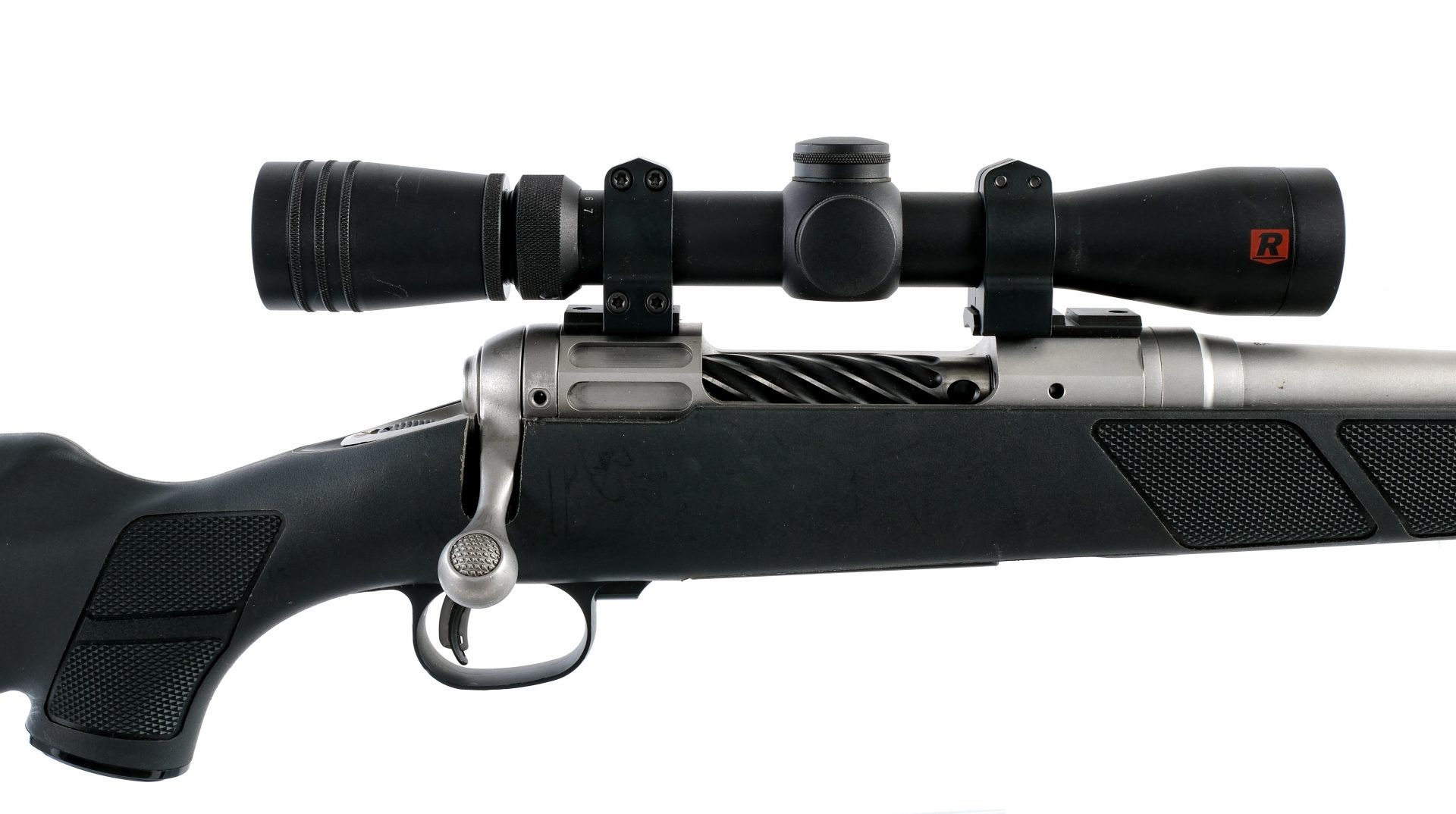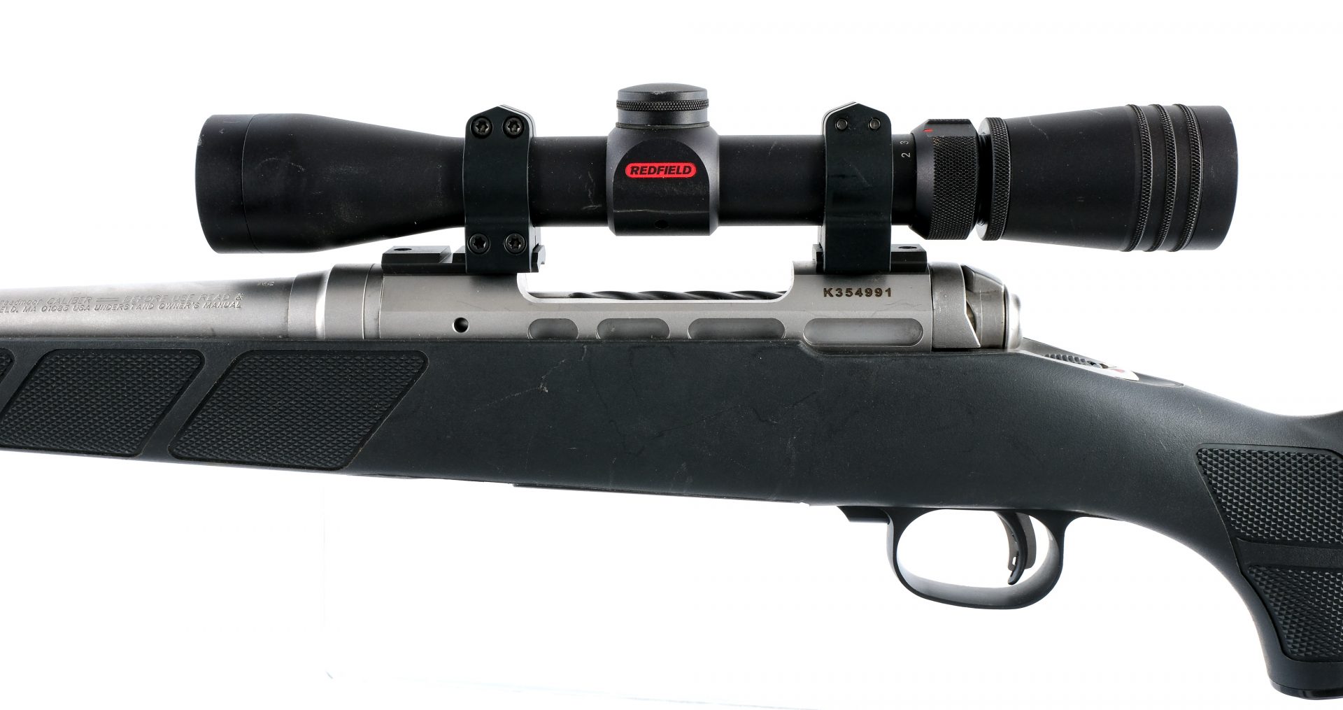 Description Savage Model 16 chambered in 6.5 Creedmoor with one, four round removable magazine and a 20″ barrel. Stainless steel barrel, receiver, and bolt handle. Spiral fluted bolt body. Paddle style magazine release. Savage Accu trigger. The receiver is drilled and tapped and mounted with a Redfield 2-7×33 scope. Black polymer stock with checkered forend, checkered pistol grip, and rubber butt pad. Front and rear sling swivels with mounted sling. Must ship to a FFL holder. Condition: Very Good with scratches and cosmetic handling wear. Some internal wear from normal operation. Some scratches and scuffs on the stock. Clean rifled bore. Barrel Length: 20″ Serial: K354991 Manufacturer: SAVAGE ARMS, INC. Caliber: 6.5 mm Creedmoor Model: 16 Book# 05325