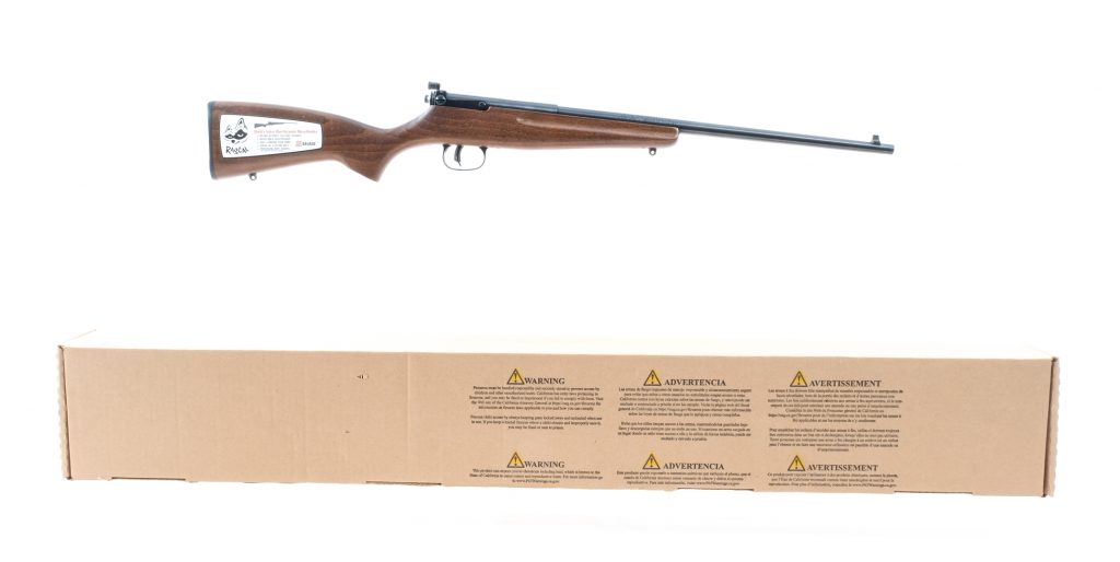 Description Savage Rascal chambered in .22 short/long/long rifle with one-shot capacity, and a 6″ blued carbon steel barrel. Smooth hardwood stock and forend with serrated butt plate. The blued carbon steel receiver is drilled and tapped for mounting an optic. Manual safety and adjustable AccuTrigger. Adjustable rear peep sight and fixed front sight blade. Front and rear eyelets for mounting a shoulder sling. Comes in factory box with matching serial number, instruction manual, and chamber lock. Must ship to FFL holder. Condition: New with tags and box. Barrel Length: 16″ Serial: 3675840 Manufacturer: SAVAGE ARMS, INC. Caliber: .22 Short, Long, Long Rifle Model: Rascal Book# 8-273