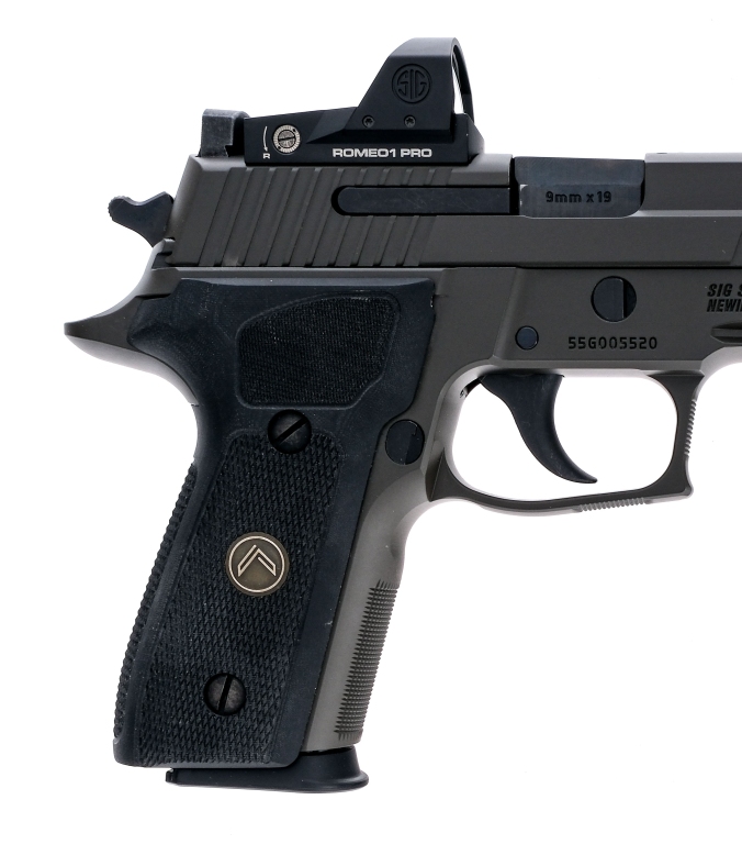 Description Sig Sauer P229 Legion chambered in 9mm with three, ten round removable magazine and a 3.9″ carbon steel barrel. Metal alloy frame with Legion gray finish and textured G10 grips with Legion medallions. Under barrel picatinny accessories rail. Textured push button magazine release and serrated slide release. Double/single action trigger and hammer with ambidextrous manual thumb safety. Stainless steel slide with Legion Gray finish, front and rear serrations and optics cut with Sig Romeo 1 Pro red dot sight. Suppressor/co-witness height X-Ray three dot night sights. Comes in its factory box with paperwork, Romeo Zero battery/tool, and three magazines. Must ship to a FFL holder. Condition: Excellent showing very little use or handling wear. Clean rifled bore. Barrel Length: 3.9″ Serial: 55G005520 Manufacturer: SIG SAUER Caliber: 9x19mm Parabellum Model: P229 Legion RXP Book# 08366