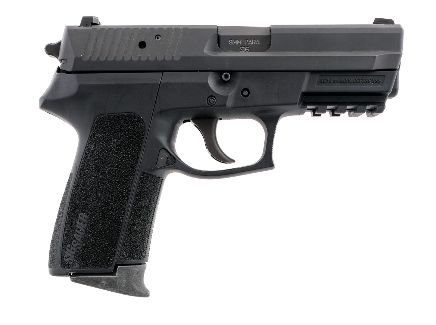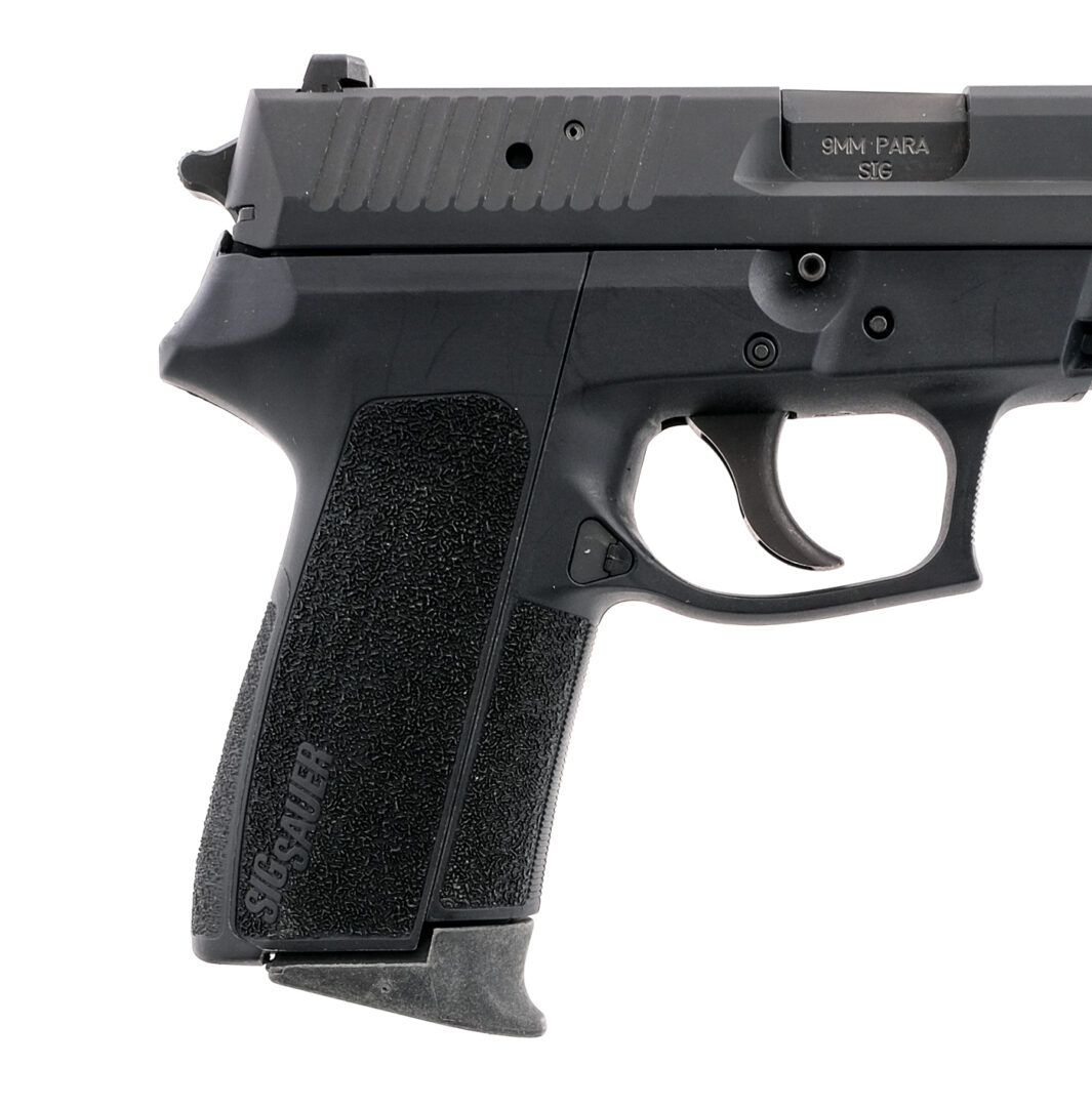 Description Sig Sauer SP 2022 semi-automatic pistol chambered in 9mm with seven, 10 round Sig Pro magazines and a 3.9″ barrel. Polymer stippled frame with accessory rail. Left side serrated extended slide stop, decocker, and magazine release. Serrated hammer. Steel Nitron finished slide with rear serrations. 3 dot white contrast sights. Comes in its factory hard case with a Sig sticker. Must ship to FFL holder. Condition: Excellent with minor scratching along the frame. Slide has a couple extremely tiny spots of finish loss and small scratches from handling and shooting wear. Bore is bright and clean. Barrel Length: 3.9″ Serial: 24B209848 Manufacturer: SIG SAUER Year: 2014 Caliber: 9x19mm Parabellum Model: SP2022 Book# 01887
