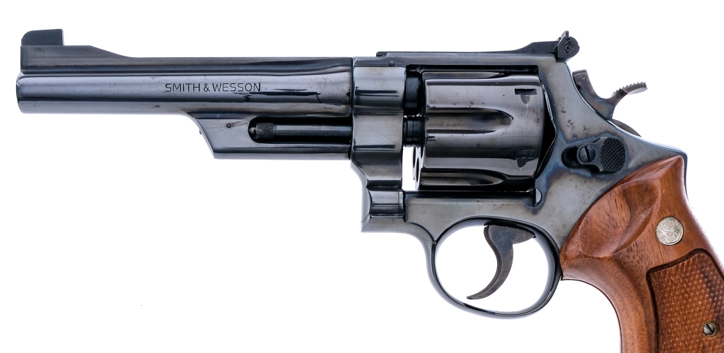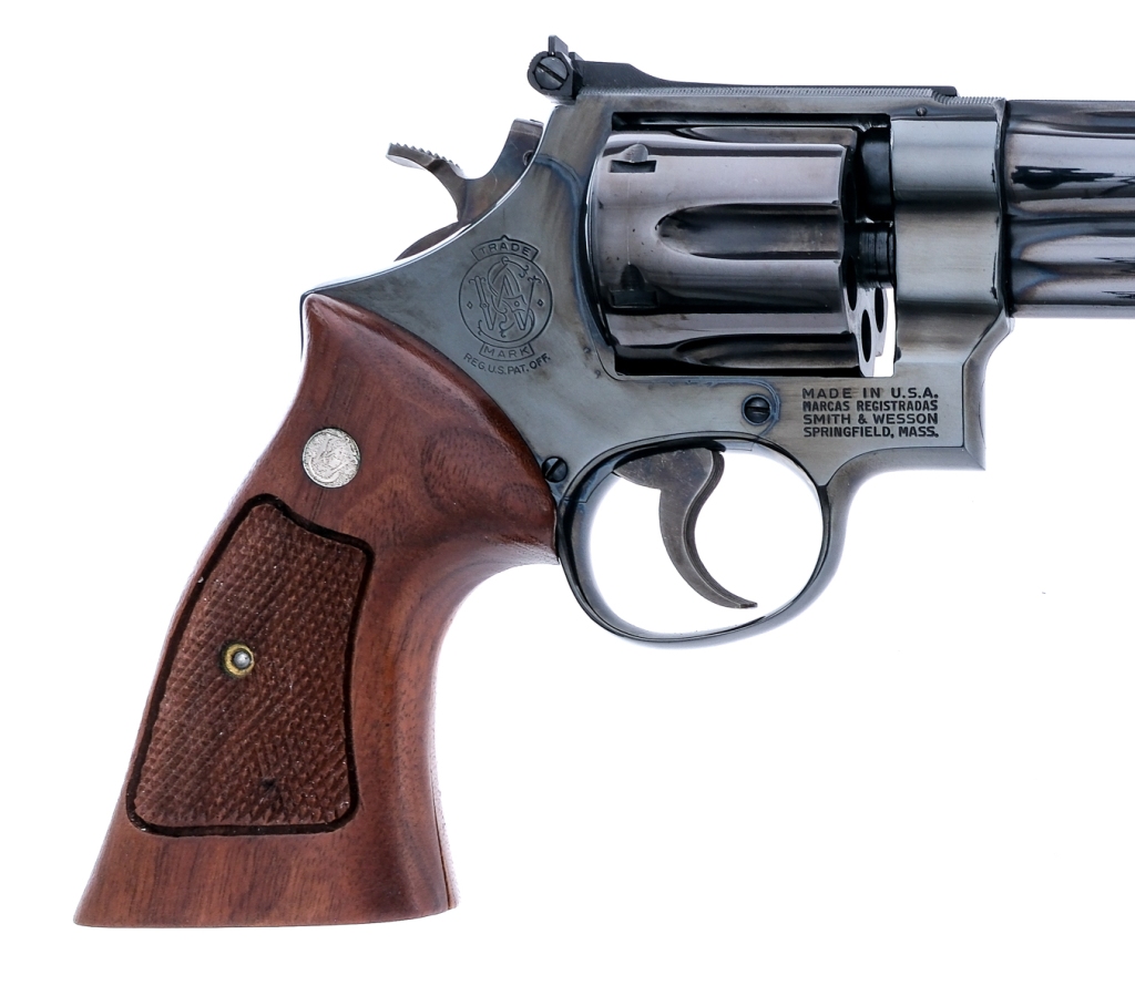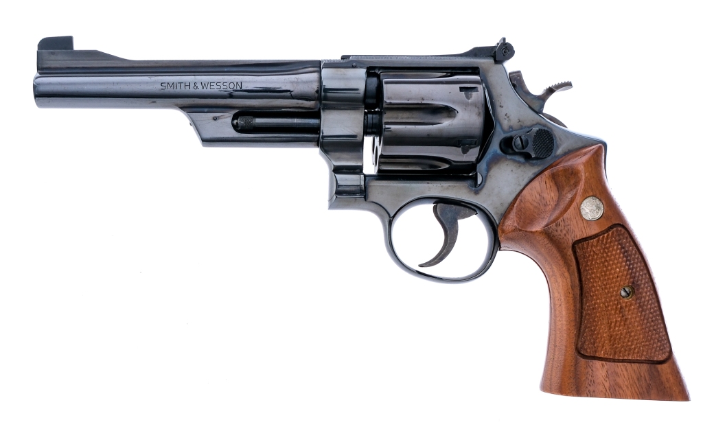 Description Smith & Wesson Model 27-2 in .357 Magnum with a six round capacity and a 6″ barrel. Made in Springfield Massachusetts in 1973. Checkered Goncalo Alves wood grip plates. Blued frame, cylinder and barrel. Serrated case colored Target trigger and knurled hammer. Left side of frame knurled cylinder release. Rear adjustable and front fixed blade sight. Must ship to a C&R or FFL holder. Condition: Excellent with light scuffs and handling wear. Clean rifled bore. Barrel Length: 6″ Serial: N177443 Manufacturer: Smith & Wesson Year: 1973 Caliber: .357 Mag Model: 27-2 Book# 07114