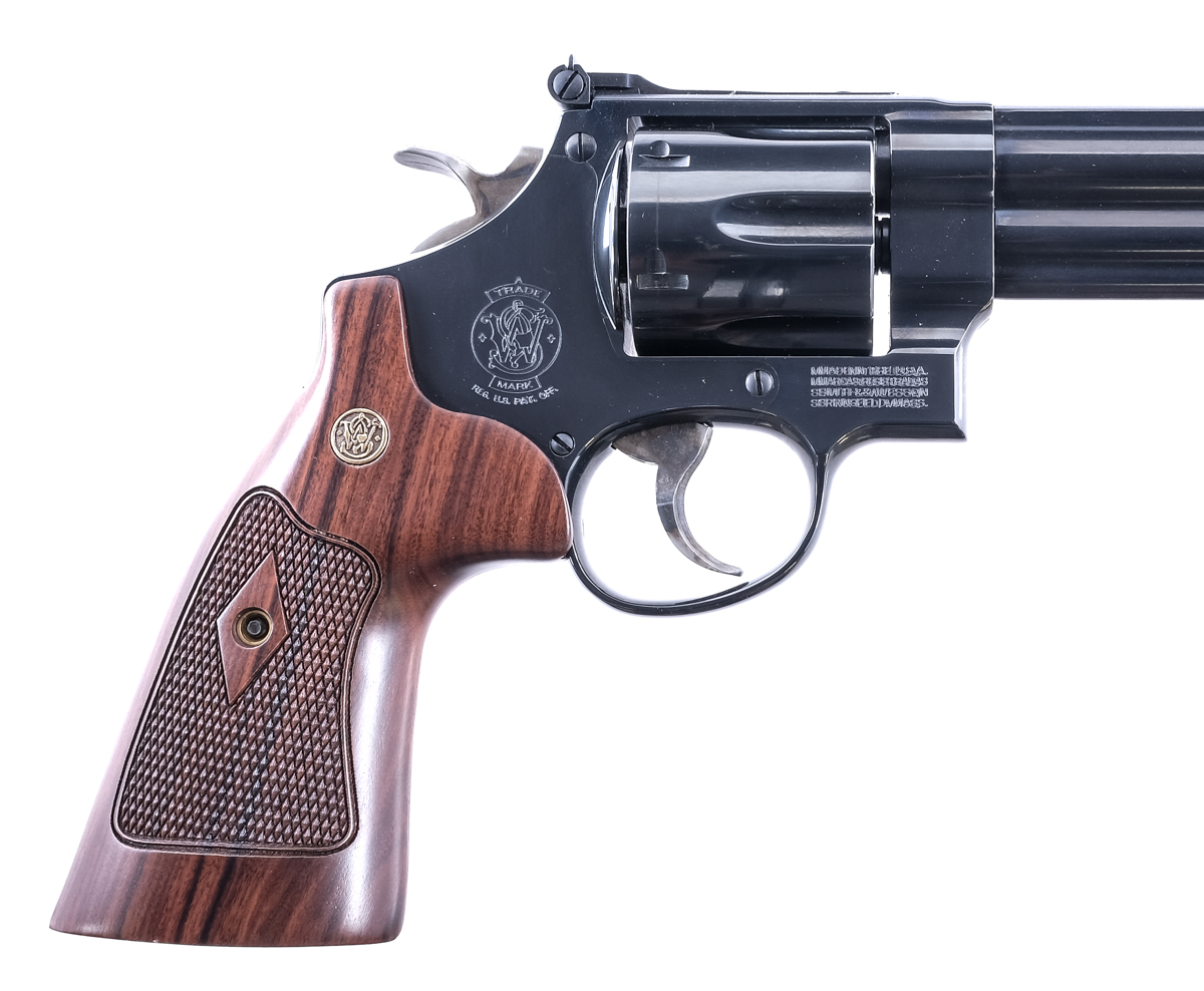 Description Smith & Wesson 29-10 chambered in .44 Magnum with a six-shot cylinder and a 6.5″ barrel. Blued barrel, frame, and cylinder. Case colored textured trigger and hammer. Slim checkered wood grips with S&W medallions. Adjustable rear and front red ramp iron sights. Comes in its factory plastic case with matching serial number, manual, cleaning brushes, and S&W wood case. Must ship to FFL holder. Condition: Very Good/Excellent with very little wear from normal handling. Light turn line on the cylinder. Clean rifled bore. Barrel Length: 6.5″ Serial: CZY2957 Manufacturer: SMITH & WESSON Caliber: .357 Magnum Model: 29-10