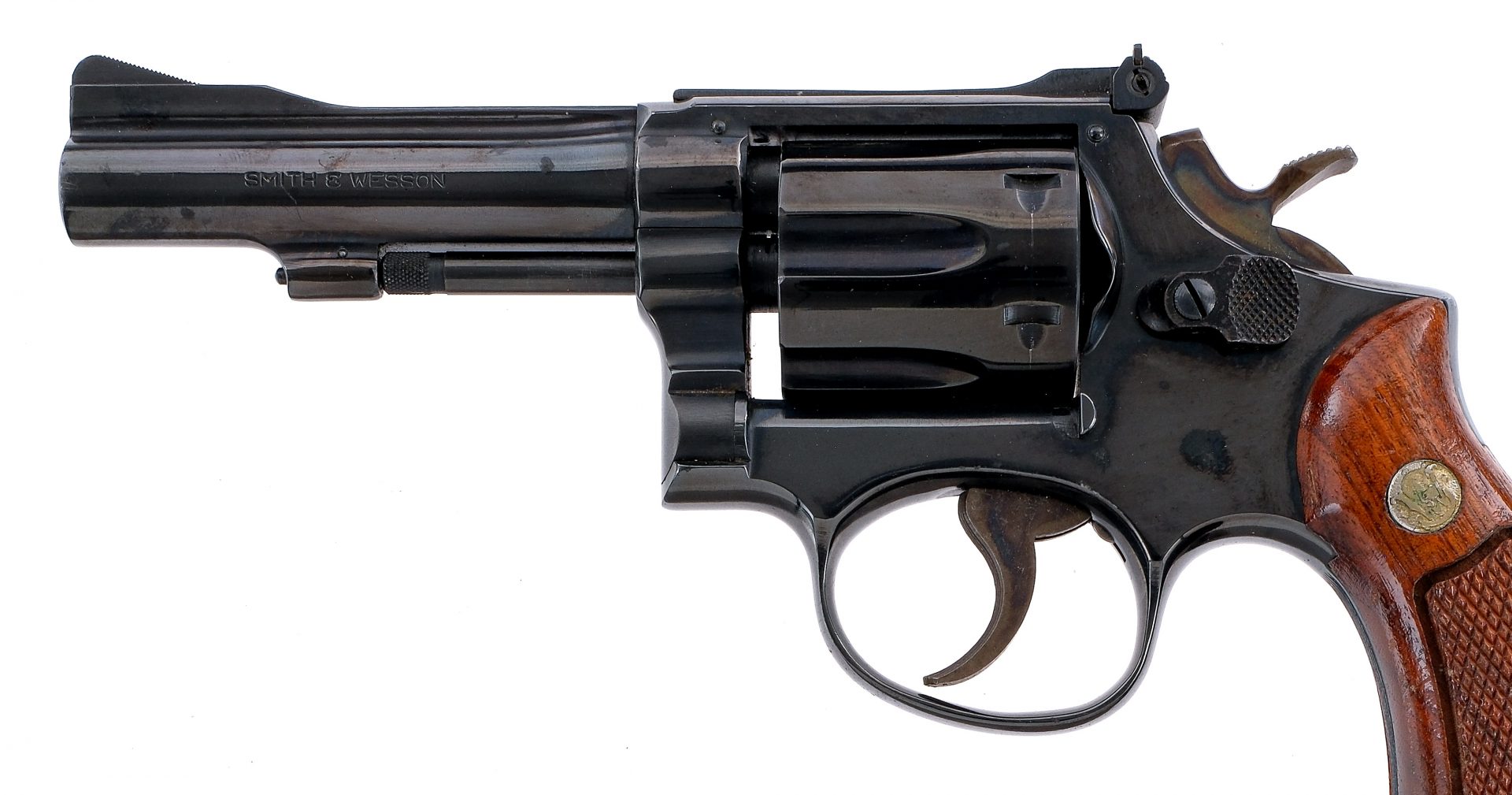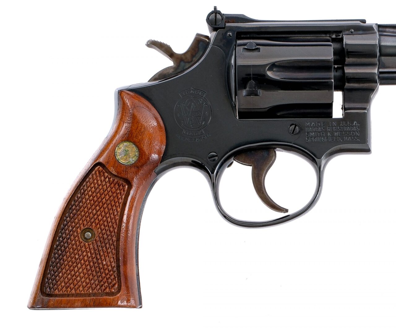 Description Smith & Wesson Model 48-3 in .22 Magnum Rimfire with a six round capacity and a 4″ barrel. Checkered wood grip plates. Blued frame, cylinder and barrel. Case colored serrated trigger and checkered hammer. Left side of frame checkered cylinder release. Rear adjustable notch and front fixed blade sight. Must ship to a FFL holder. Condition: Good with light scuffs and touches of rust. The rifled bore has a tint touch of rust at the rear, otherwise clean. Barrel Length: 4″ Serial: 8K37904 Manufacturer: Smith & Wesson Year: 1975 Caliber: .22 MRF Model: 48-3 Book# 04767