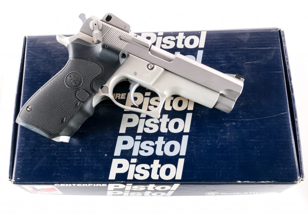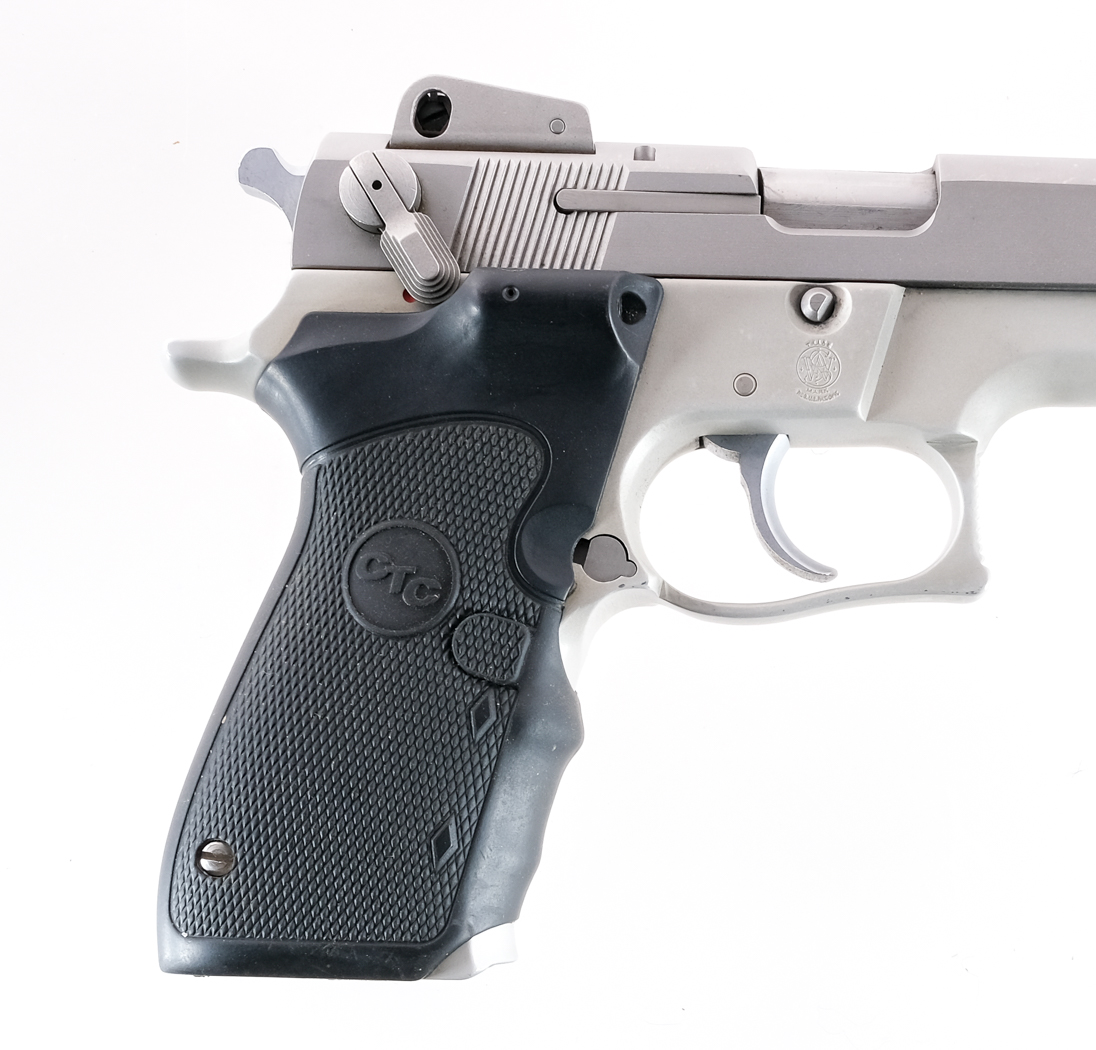 Description Smith & Wesson Model 5903 in 9mm missing its magazine with a 4″ barrel. CTC rubber checkered laser grip plate, new batteries working. Matte finished alloy frame. Serrated steel slide and barrel. Untextured trigger and serrated hammer. Left side of frame slide release and magazine release button. Rear slide ambidextrous serrated safety switch. Rear adjustable and front white DOT sights. Comes in its factory box with matching serial number, instruction manual and unopened cleaning kit. Must ship to a FFL holder. Condition: Good/Very Good with light scratches and finish wear. Missing its removable magazine. Clean rifled bore. Barrel Length: 4″ Serial: TDK6814 Manufacturer: Smith & Wesson Caliber: 9mm Model: 5903 Book# 9-340