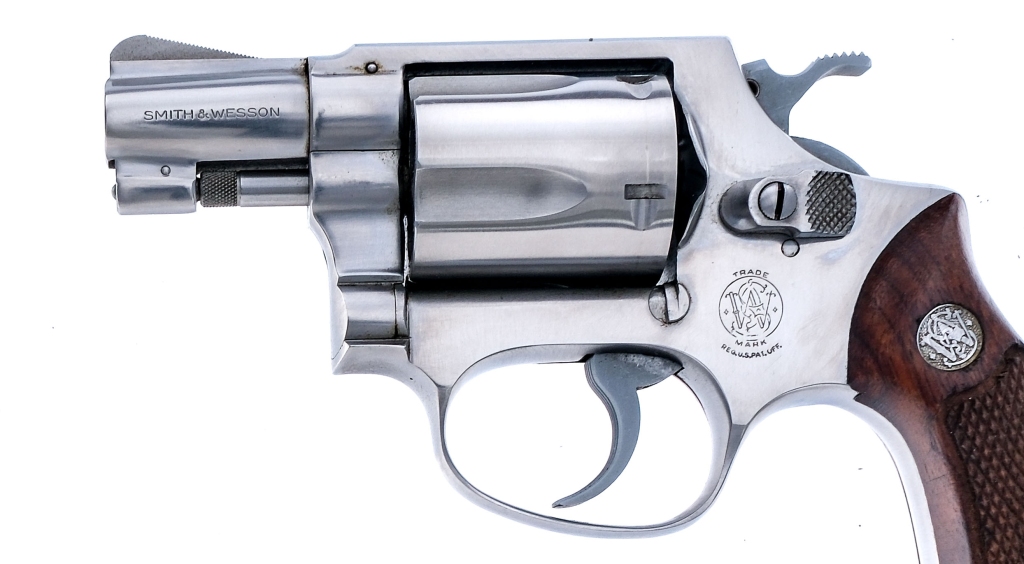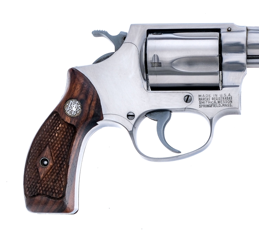 Description Smith & Wesson model 60 chambered in .38 special with a five-shot cylinder and a 1.875″ snub nose barrel. Serial number 491255. Stainless steel barrel, frame, fluted cylinder, checkered cylinder release, double action trigger, and hammer. Checkered wood diamond grips with S&W monograms. Rear notch and fixed front blade iron sights. Must ship to a FFL or C&R holder. Condition: Very Good with light scratches, high edge wear, and cosmetic handling wear. Light cylinder turn line and internal wear from operation. Some spots of dried oil. Light wear on the grips. Bright and clean bore with strong rifling. Barrel Length: 1.875″ Serial: 491255 Manufacturer: SMITH & WESSON Caliber: .38 Special Model: 60 Book# 08403