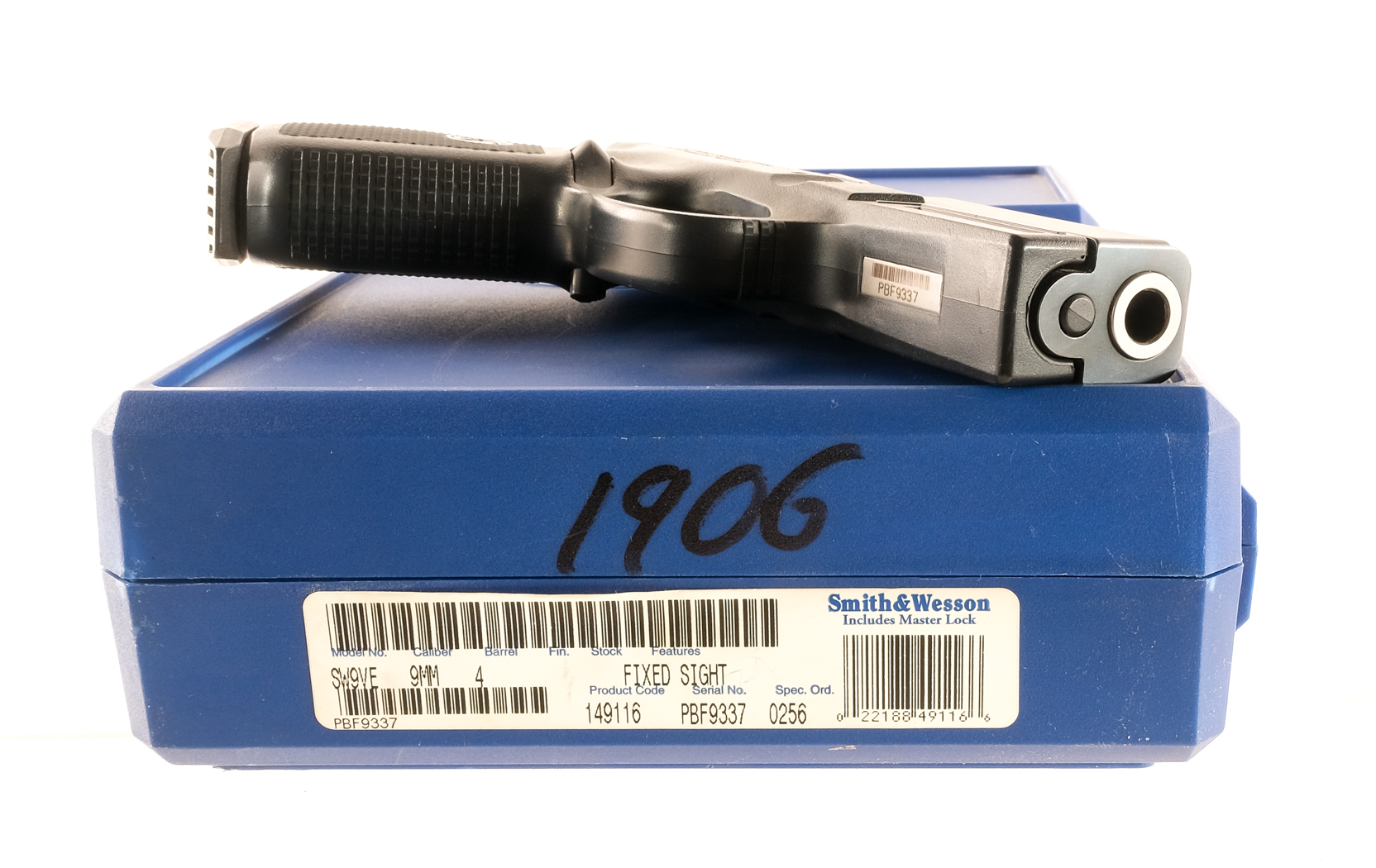 Description Smith & Wesson SW9VE in 9mm with one, ten round removable magazine and a 4″ barrel. Checkered black composite grip on frame. Black finished serrated metal slide. Left side serrated slide release and magazine release button. Front and rear fixed white DOT sights. Comes in its factory hard case with matching serial number and instruction manual. Must ship to a FFL holder. Condition: Very Good/Excellent with light handling wear. Clean rifled bore. Barrel Length: 4″ Serial: PBF9337 Manufacturer: Smith & Wesson Caliber: 9mm Model: SW9VE Book# 9-314