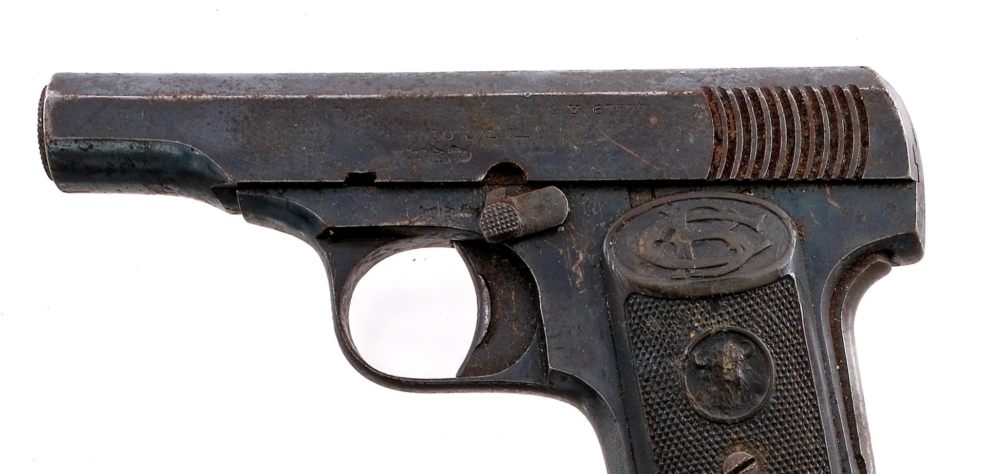 Description Automatica Espanola Bufalo in 7.65mm which is .32 caliber missing its removable magazine with a 3.5″ barrel. Made in Spain. Checkered composite grip plates with embossed CB on each top side. Blued frame, solid trigger and serrated slide. Magwell located serrated magazine release. Left side of frame checkered safety switch. Must ship to a C&R or FFL holder. Condition: Fair with missing magazine, scratches, rust and handling wear. The rifled bore has rust with visible rifling. Sold AS-IS. Barrel Length: 3.5″ Serial: 5732 Manufacturer: Spain Caliber: .32 ACP Model: Bufalo Book# 01122