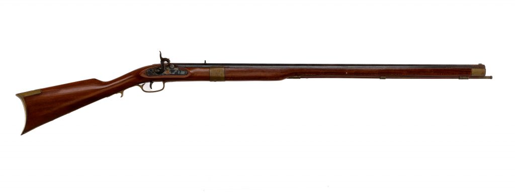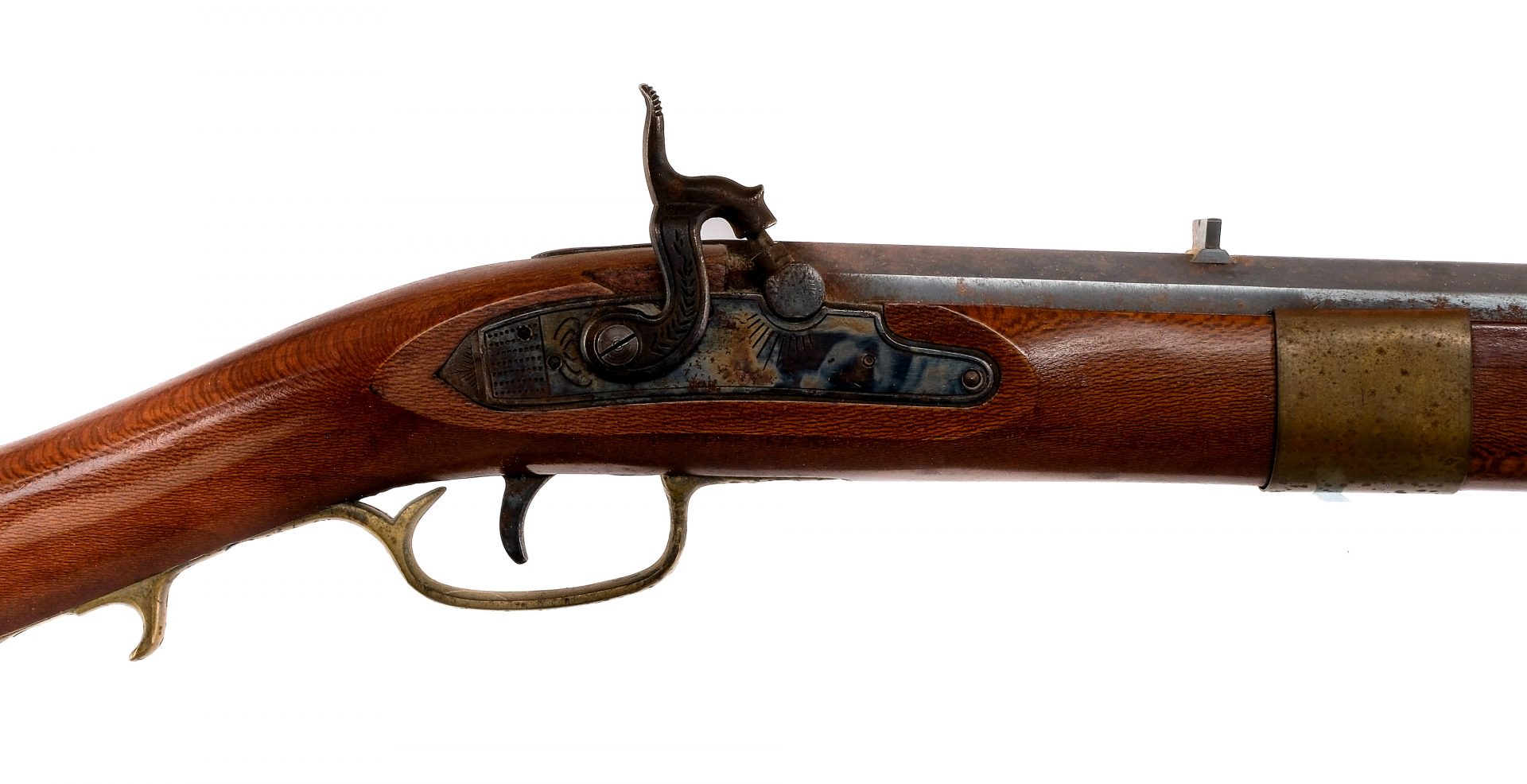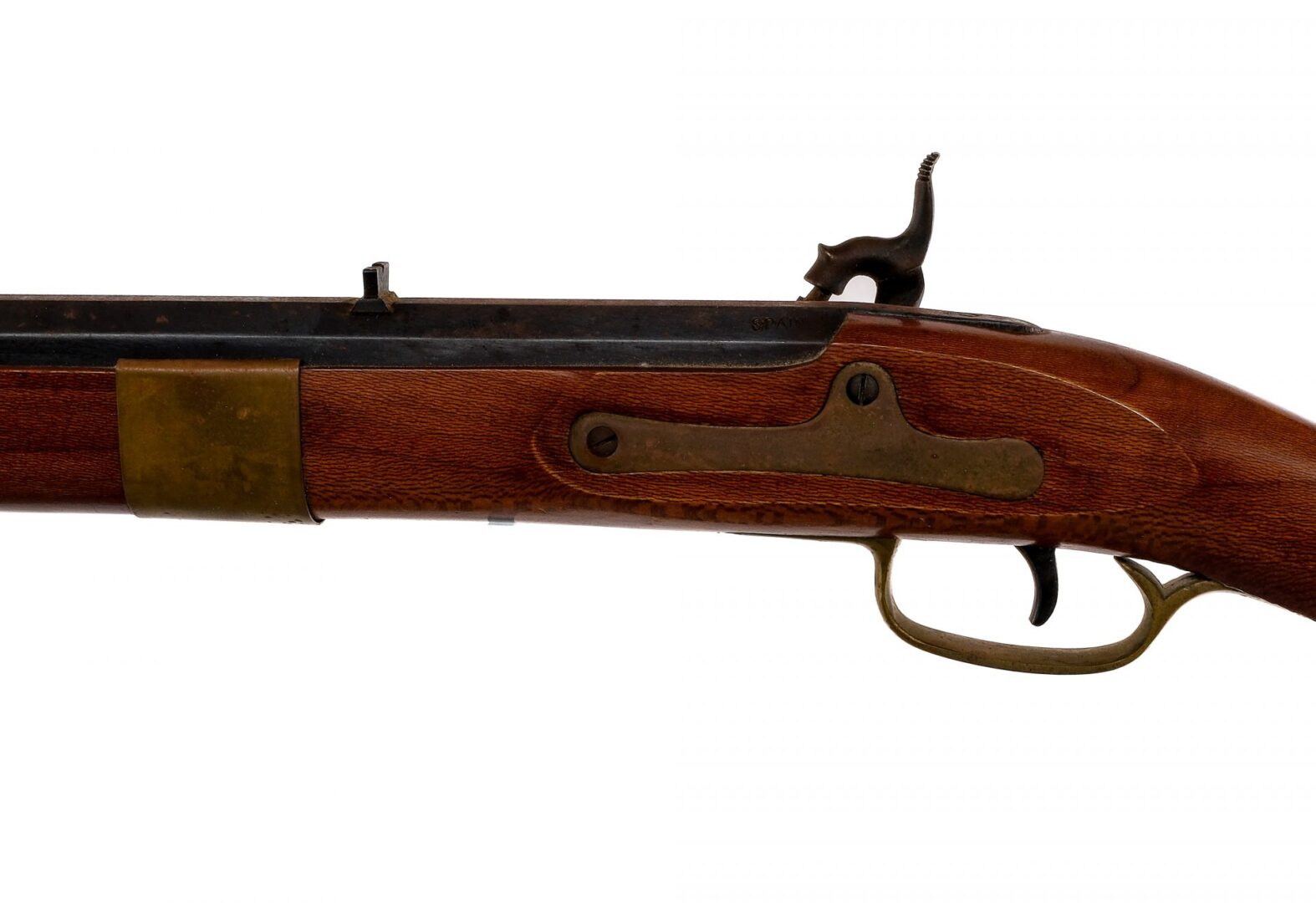 Description Spanish made percussion rifle measuring in at the bore 11.40mm with a single round capacity and a 33″ barrel. Unknown/Unmarked maker. Smooth full length wood stock. Brass butt plate, trigger guard, barrel band, and front nose cap. Blued trigger and barrel. Case colored lock plate. Under barrel removable wood and brass ramrod. Front and rear fixed sights. Black Powder Percussion Muzzle Loader, No FFL required and ships to MOST buyers homes. Condition: Fair with scratches, handling wear and rust. The smooth bore has rust. Barrel Length: 33″ Serial: 2 Manufacturer: Unknown Caliber: 11.40mm Model: Black Powder Muzzle Loader