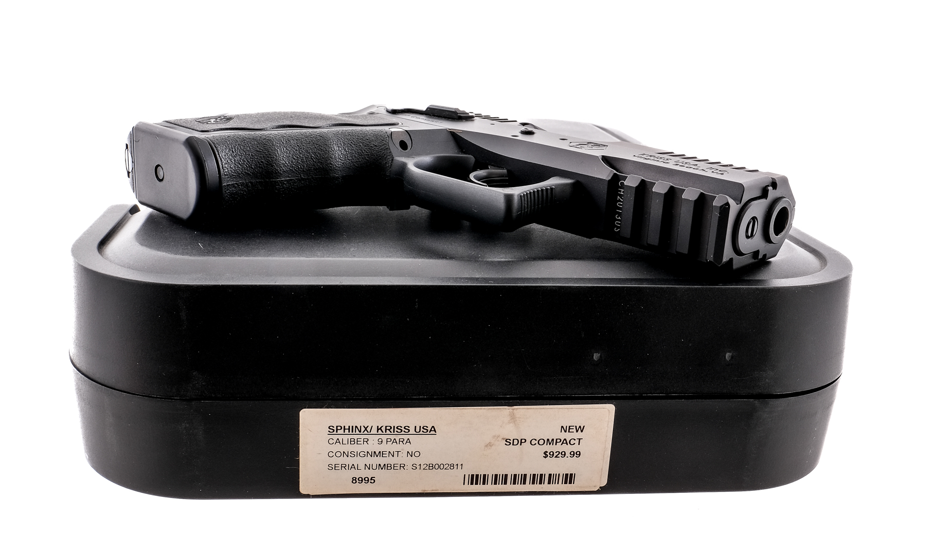 Description Sphinx SDP Compact in 9mm with three, fifteen round removable magazines and a 3.5″ barrel. Removable rubber backstrap plate. Textured composite grip on frame. Blued serrated trigger, bobbed hammer, serrated slide and barrel. Lower left side of frame serrated magazine release. Left side of frame slide release button and ambidextrous de-cocking lever. Front and rear fixed sights. Comes with three magazines, two backstrap replacement plates, speed loader, instruction manual and cleaning kit. Must ship to a FFL holder. Condition: Very Good/Excellent with light scuffs and handling wear. Clean rifled bore. Barrel Length: 3.5″ Serial: S12B002811 Manufacturer: Sphinx System Ltd Caliber: 9mm Model: SDP Compact Book# 10-591