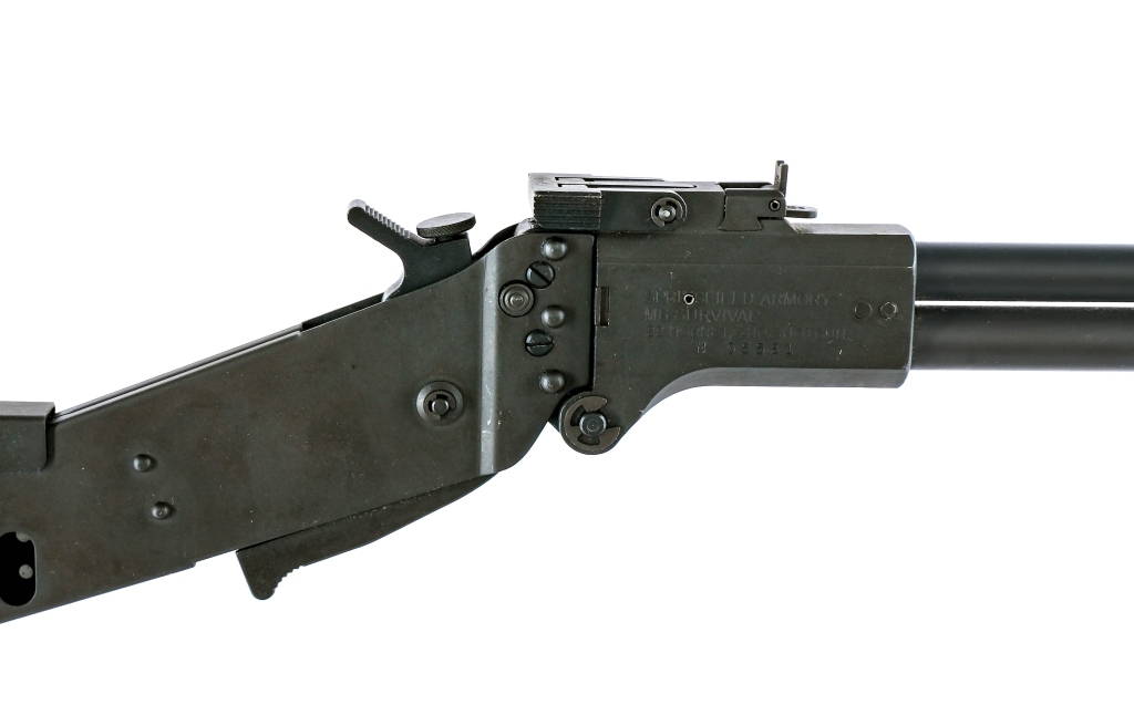 Description Springfield Armory M6 Survival Combo gun with single shot .22 Hornet over .410 Bore over under barrels. Full parkerized finish. Fixed front blade and double rear sight. Rear notch for .410, and rear peep for .22 Hornet. Serrated trigger and hammer. Cross bolt safety. Metal stock with rubber cheek rest. Ammo storage for both calibers in the stock under the cheek rest. Must ship to a FFL holder. Condition: Very Good with light scratches, sharp edge wear, and general cosmetic handling wear. Normal wear on the internal/moving parts from operation. The top bore is bright and clean with strong rifling. The bottom bore is bright and clean. Barrel Length: 18″ Serial: M05581 Manufacturer: SPRINGFIELD ARMORY Gauge: .410 Caliber: .22 Hornet Model: M6 Survival Book# 06054