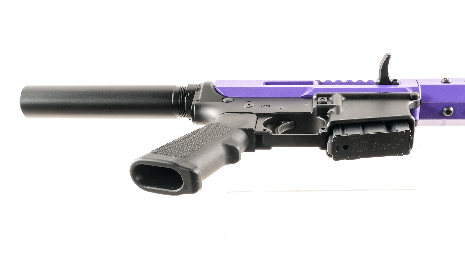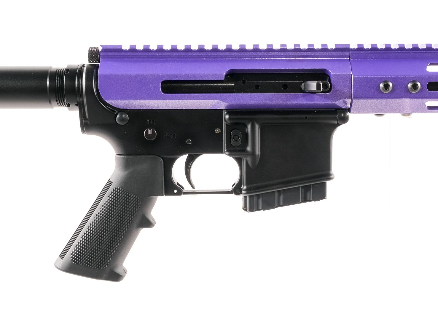 Description Stag Arms STAG-15 in 5.56 with one, AR-Stoner fifteen round removable magazine and a 8″ barrel with flash hider. Black finished buffer tube. Checkered composite pistol grip. Black finished frame and untextured trigger. Upper receiver and front foregrip finished in a purple pearl finish. Right side of receiver magazine release. Left side of receiver serrated safety switch and action release. Right side charging handle. Top mounted optics rail. Must ship to a FFL holder. Condition: Like new with light handling wear. Clean rifled bore. Barrel Length: 8″ Serial: S064109 Manufacturer: Stag Arms Caliber: 5.56 Model: STAG-15 Book# 9-342