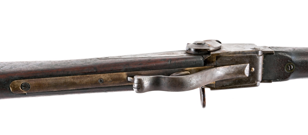 Description Star Arms Model 1858 ( Starr Carbine ) in .54 caliber with a single round capacity and a 21″ barrel. Finish worn butt plate. Smooth wood stock and front forend. Finish worn hand lever, receiver, hammer, falling block and barrel. Rear flip up and front fixed blade sight. Left side of receiver saddle ring. Left side of barrel marked: L A B. Top of barrel marked: A R K I G. Antique, No FFL required and ships to MOST buyers home. Condition: Antique, Good with scratches, finish wear/loss, rust/pitting, wood dings and handling wear. The front barrel band spring is broken. The rifled bore has rust/pitting with visible rifling. Barrel Length: 21″ Serial: 12323 Manufacturer: Starr Arms Caliber: .54 Model: 1858 Year-Range 1858-1867