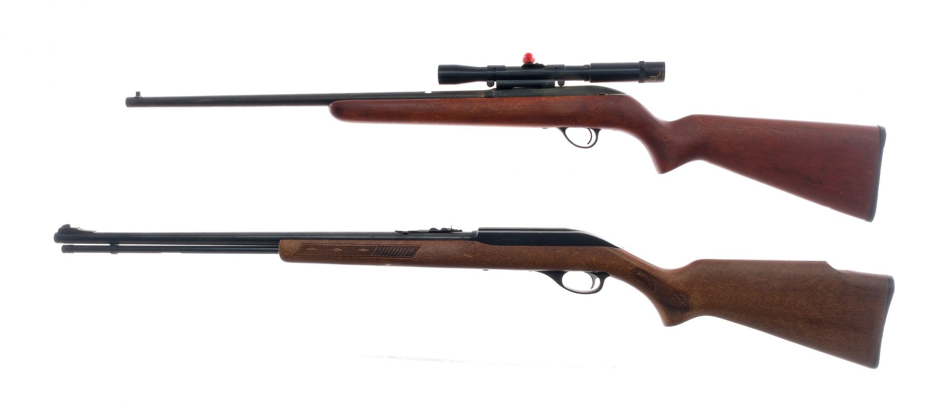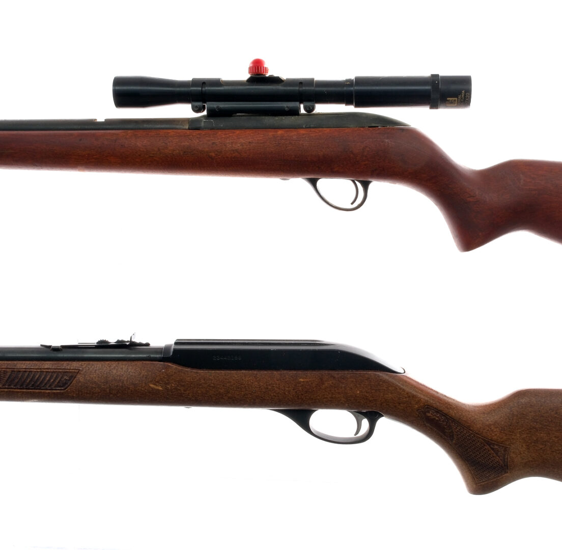 Description Estate .22 caliber rifle lot with two pieces. Stevens/Savage Model 73 in .22 Short, Long or Long Rifle with a varied capacity and a 23″ barrel. Smooth wood stock. Blued receiver and barrel. Mounted with a Universal 3x-7×20 scope with a broken reticle. Marlin Glenfield Model 60 in .22 Long Rifle with a eighteen round capacity and a 22″ barrel. Smooth wood stock. Blued receiver, magazine tube and barrel. Under barrel magazine tube. Rear adjustable and front fixed blade sight. JM stamped barrel. Must ship the Stevens to a C&R or FFL holder and the Marlin to a FFL holder. Condition: Fair with scratches, wood dings, rust, missing stock screw in the Stevens and broken reticle on the scope. Sold AS-IS. Barrel Length: 22″ 20″ Serial: NVSN 23443199 Manufacturer: Marlin Stevens Caliber: .22 S L LR Model: 60 73 Book# 02728 02751